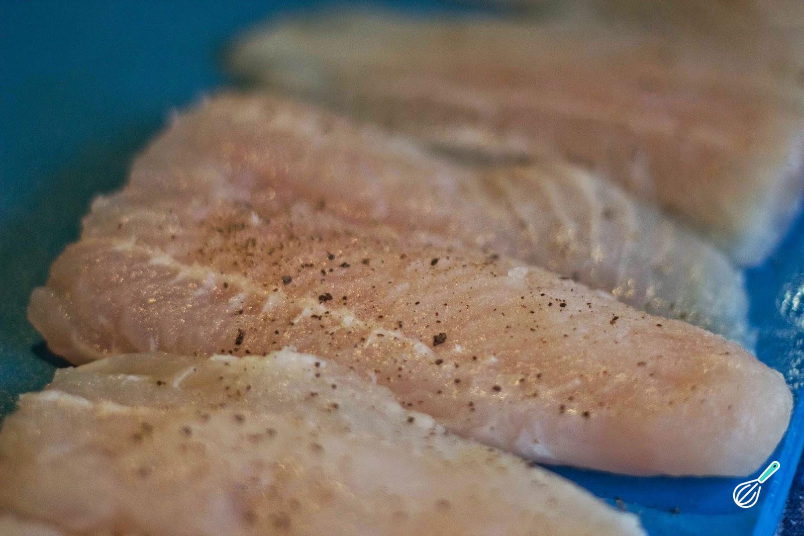 O primeiro passo desta receita de linguado na grelha é temperar os filetes com o suco de 1 limão, os dentes de alho esmagados, sal e pimenta. Deixe ficar por 30 minutos, para pegar o sabor.