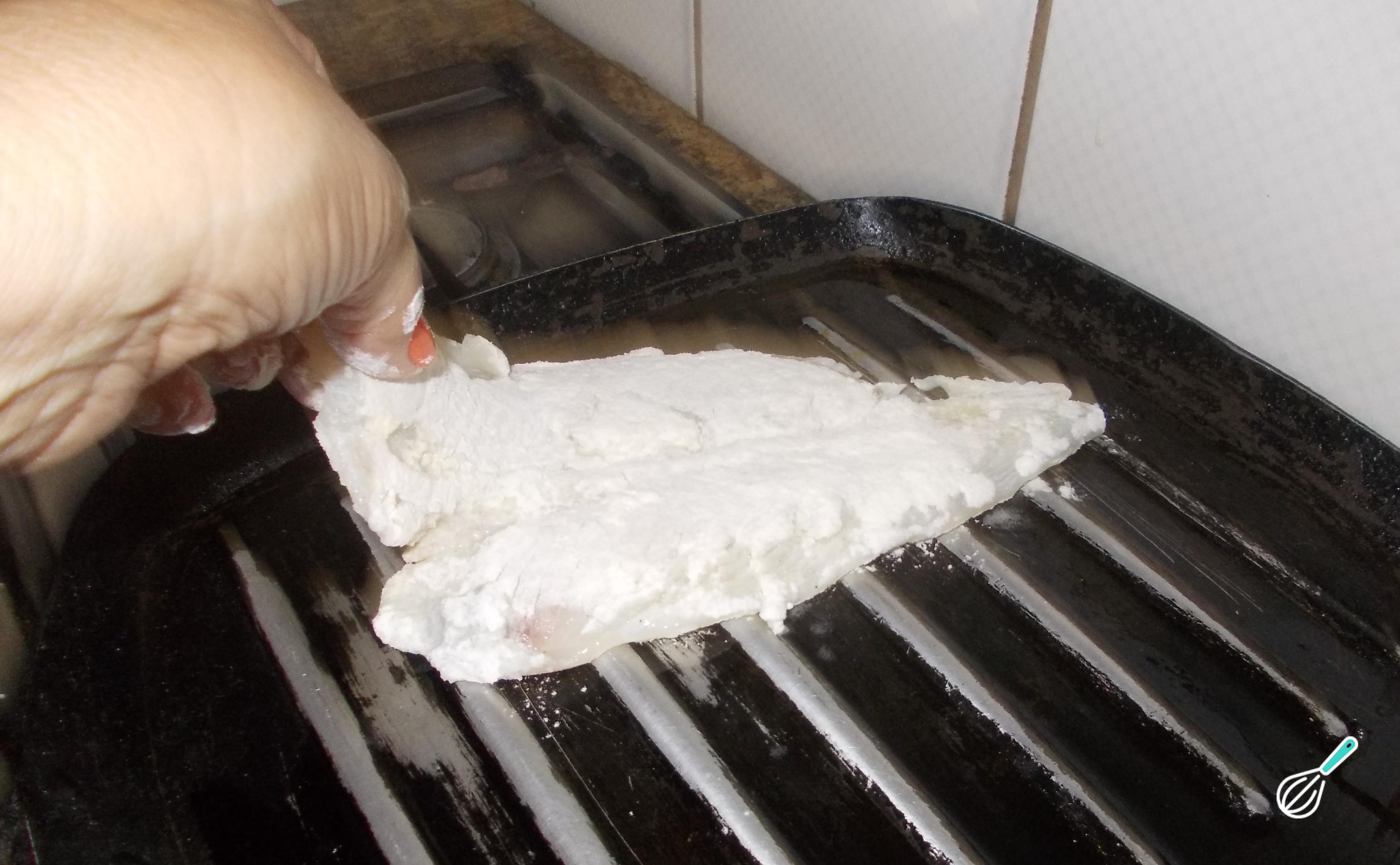 Após o tempo indicado, envolva os filés com a farinha de trigo, um truque para o peixe não grudar na grelha. Aqueça a grelha e cozinhe o linguado de um lado e do outro, virando com cuidado para não desmanchar.