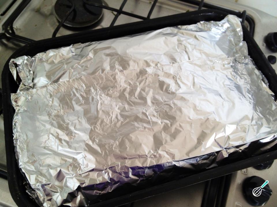 Leve a assadeira ao forno preaquecido a 200 º C e asse por cerca de 30 minutos. Retire a folha de alumínio, deixe dourar o topo da linguiça de frango e retire do forno.