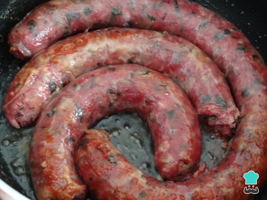 Em seguida acrescente o vinho e deixe ferver, para soltar os pedacinhos grudados. Cubra as linguiças com a água e tampe a panela.