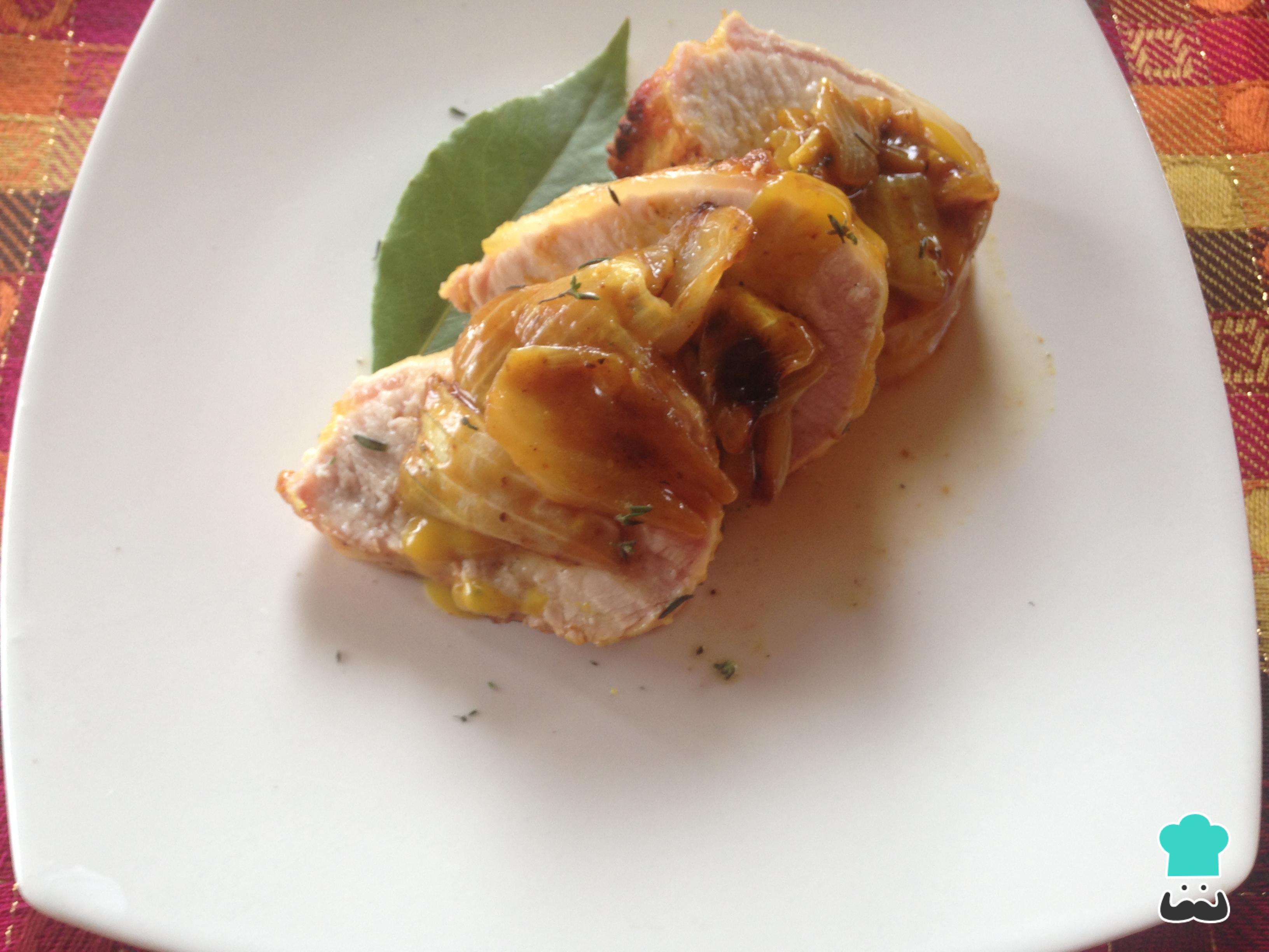 No final desse tempo sirva o lombinho de porco no forno com mel e mostarda acompanhado das cebolas. Bom apetite!