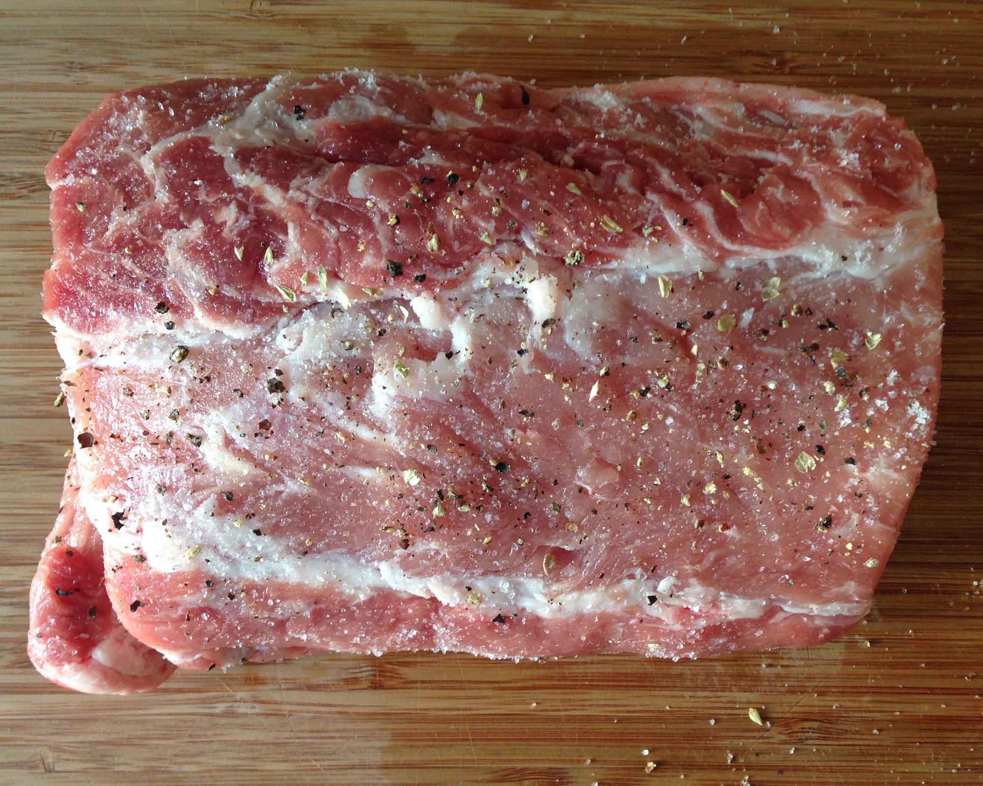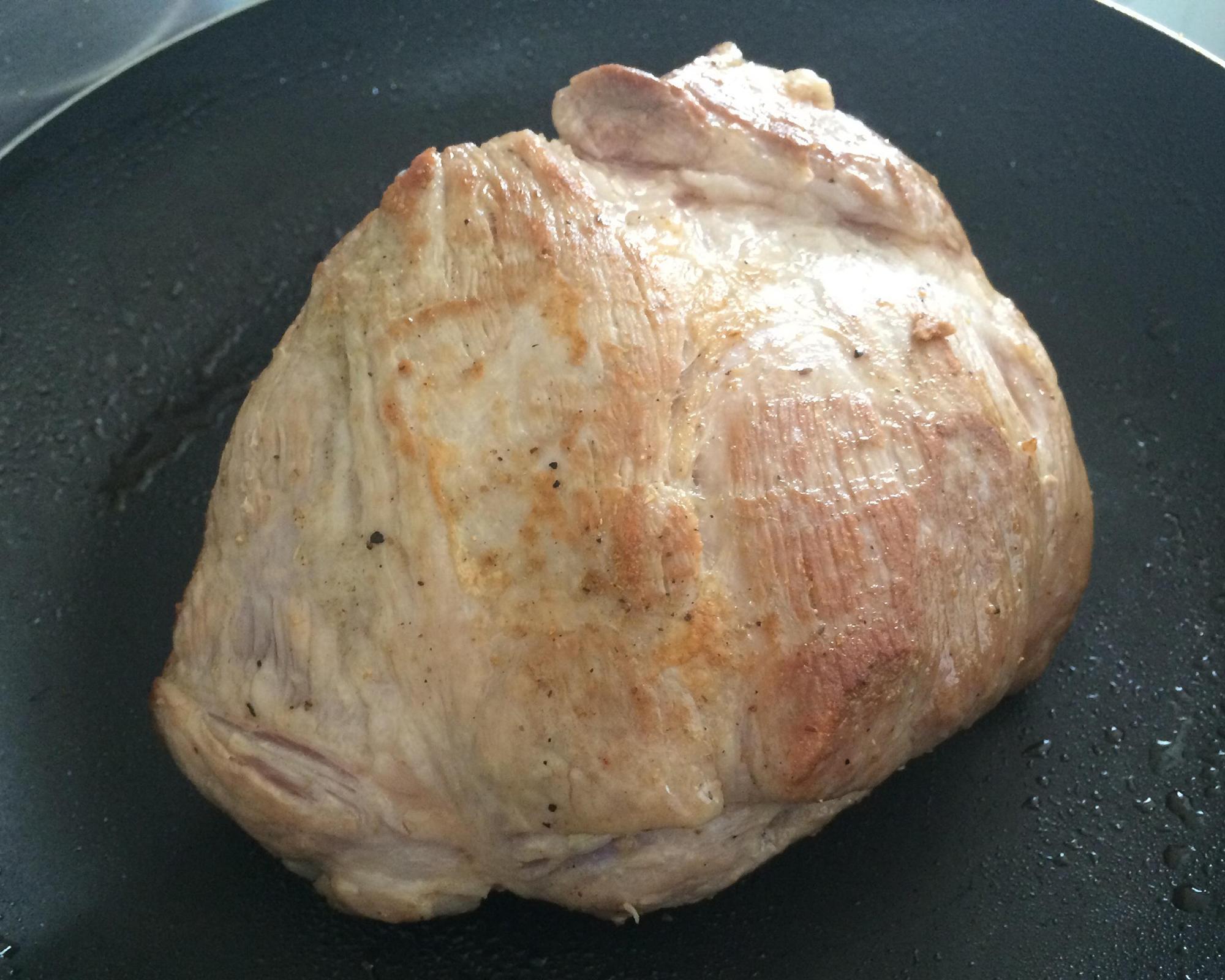 Primeiramente limpe o lombo de porco retirando o excesso de gordura. Tempere com sal e pimenta de todos os lados e reserve.