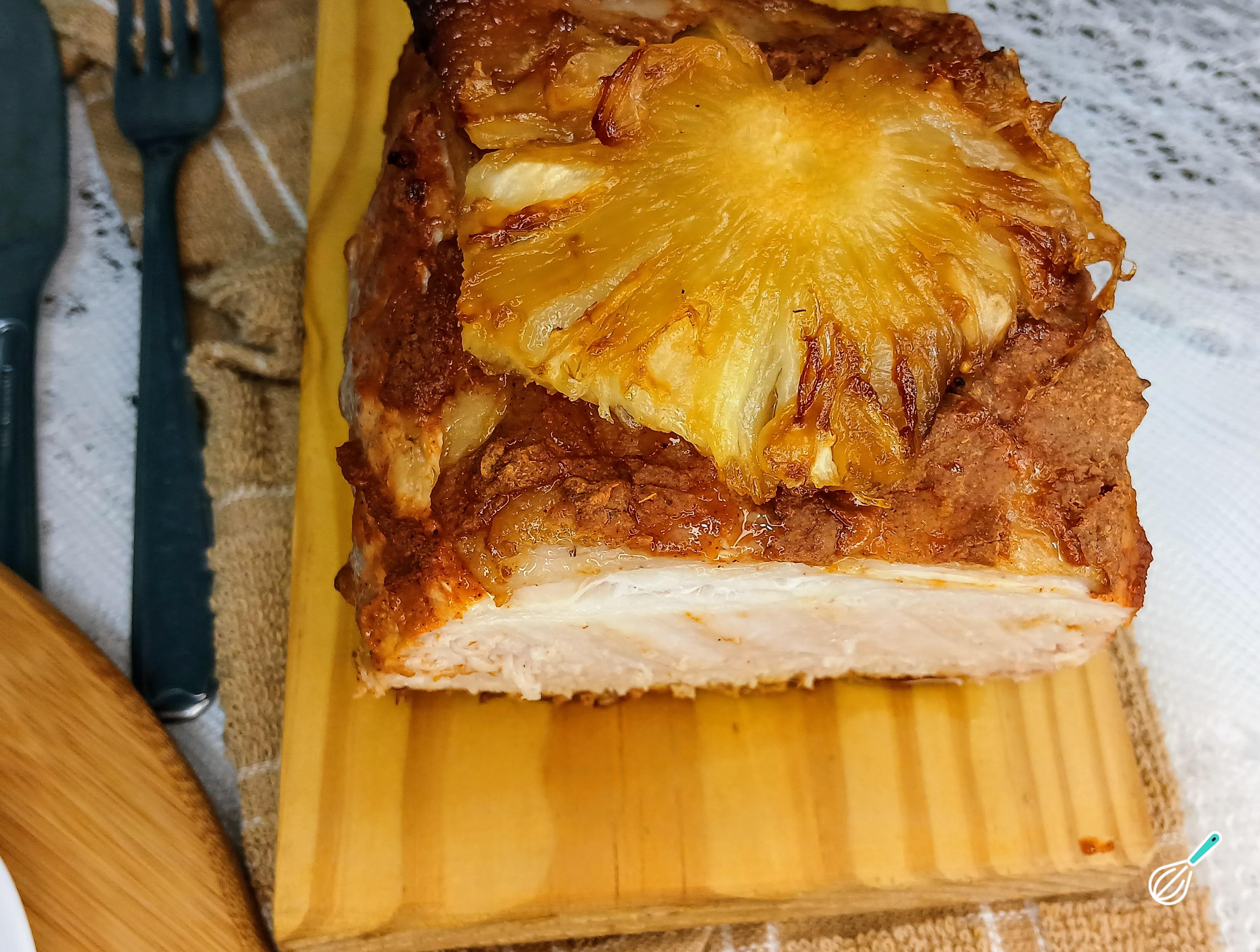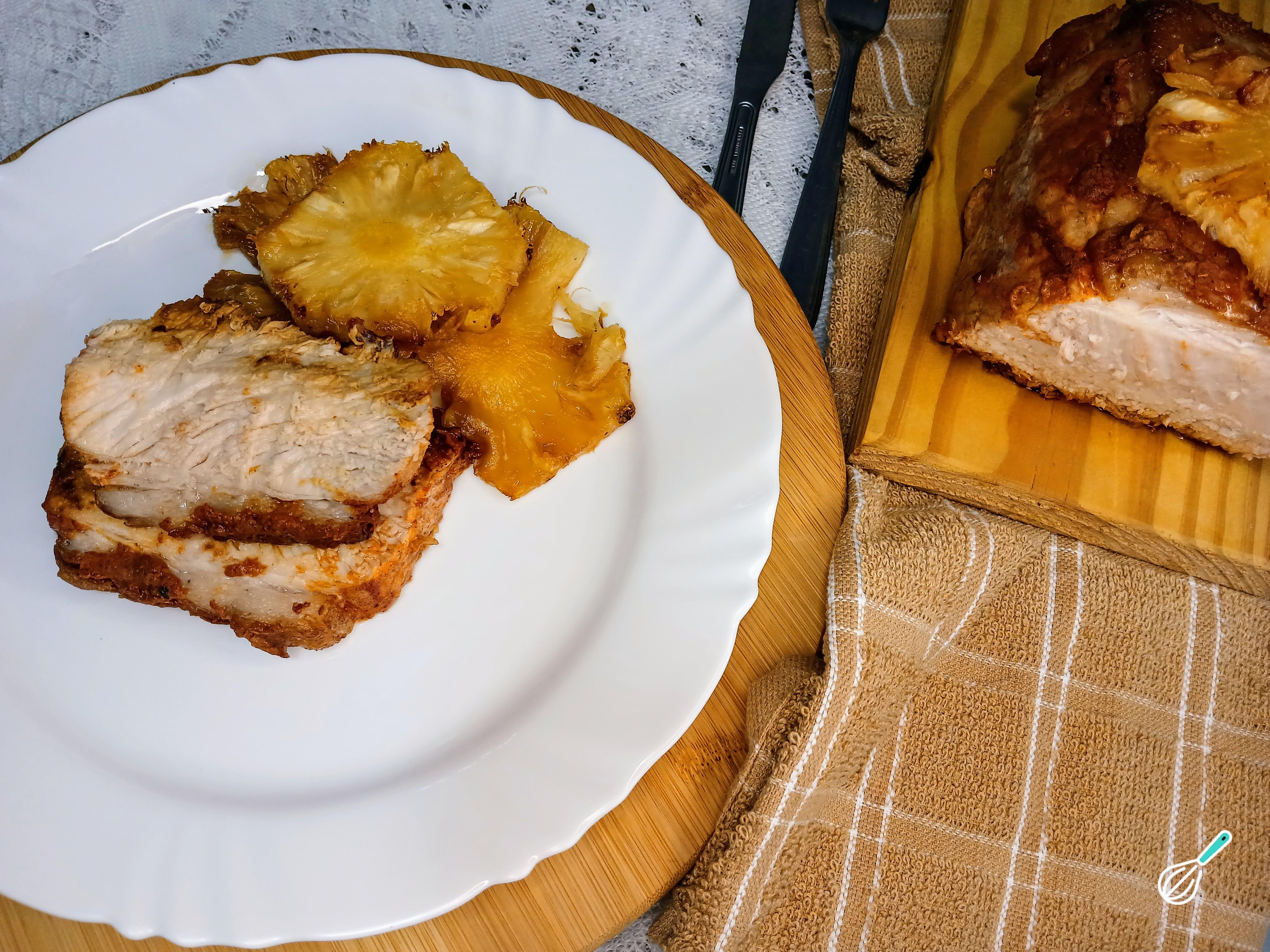 Seu lombo assado com abacaxi está pronto. Delicioso e suculento, perfeito para comer acompanhado de uma bela farofa e um arroz branco soltinho. Ficou com água na boca? Faça em sua casa e nos envie fotos.