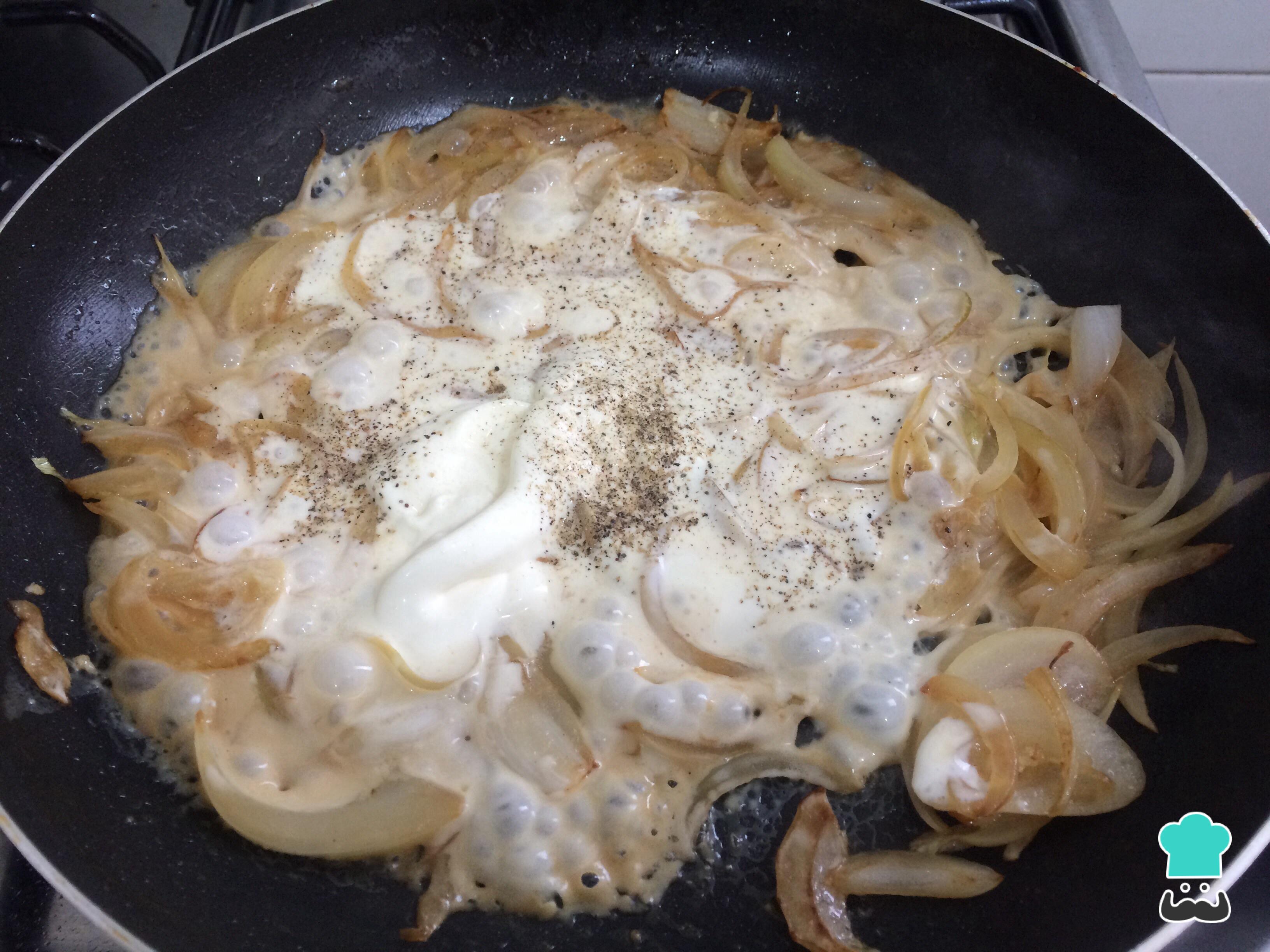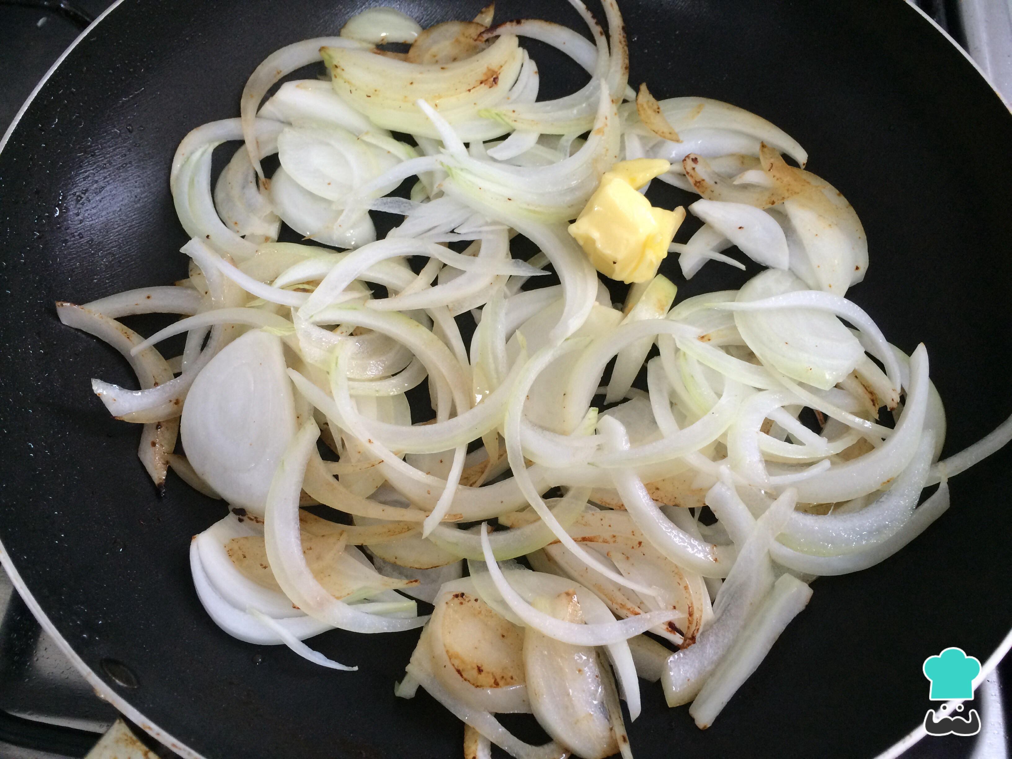 Quando estiverem douradinhos, retire os medalhões e adicione à frigideira a cebola cortada em meias-luas e a manteiga. Tempere com sal e pimenta a gosto, e cozinhe até que esteja macia e dourada.
