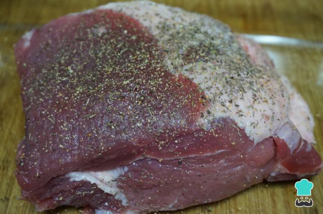 Quando a carne estiver com cara de pronta, bem douradinha por fora como na foto, retire do forno e deixe repousar por 5 minutos antes de cortar.