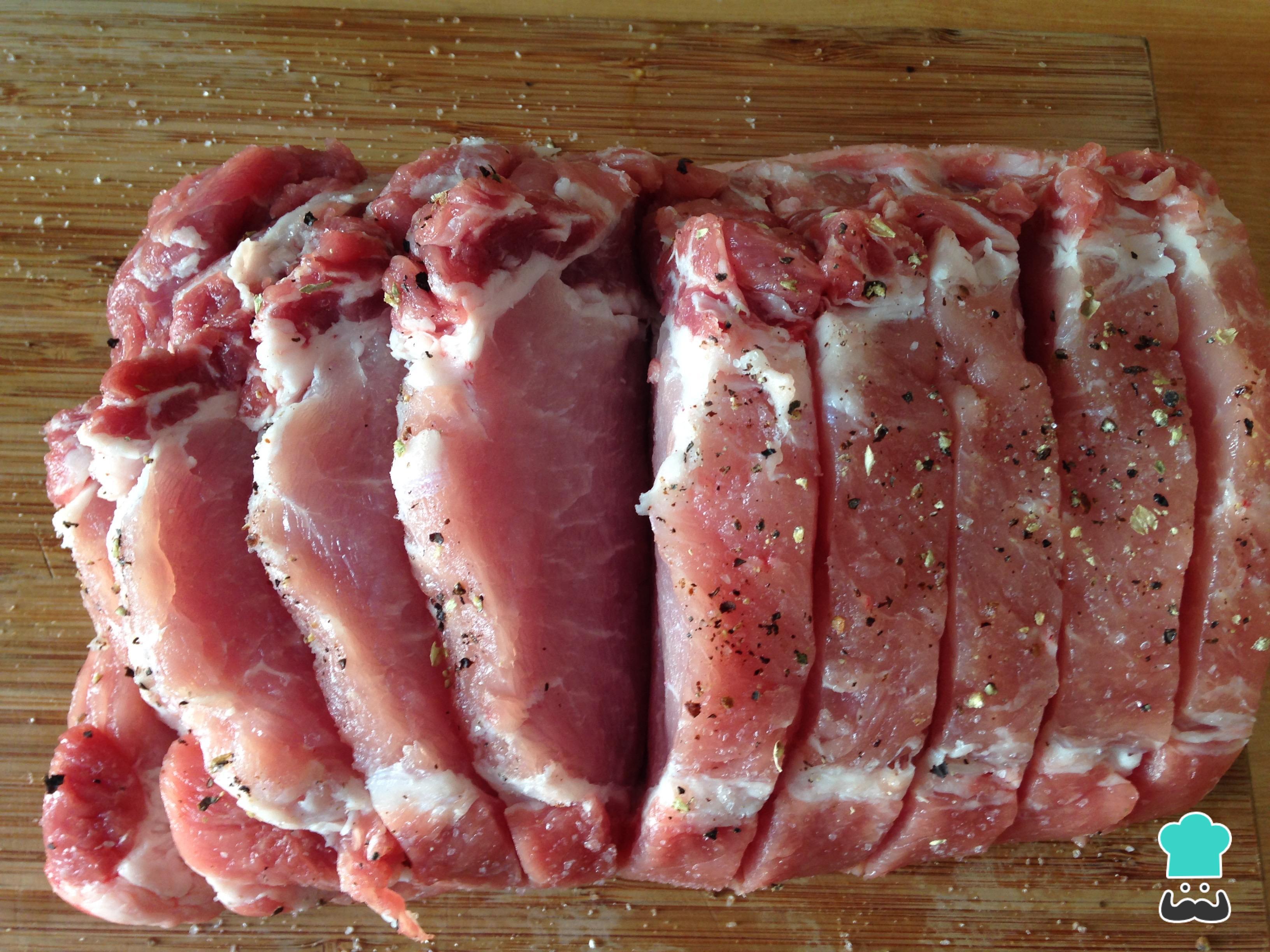 Corte o lombo em fatias, cerca de 8 com 2 cm de espessura, sem chegar até ao final (para que não desmanche). Tempere o interior com sal e pimenta também. Regue com um fio de azeite.