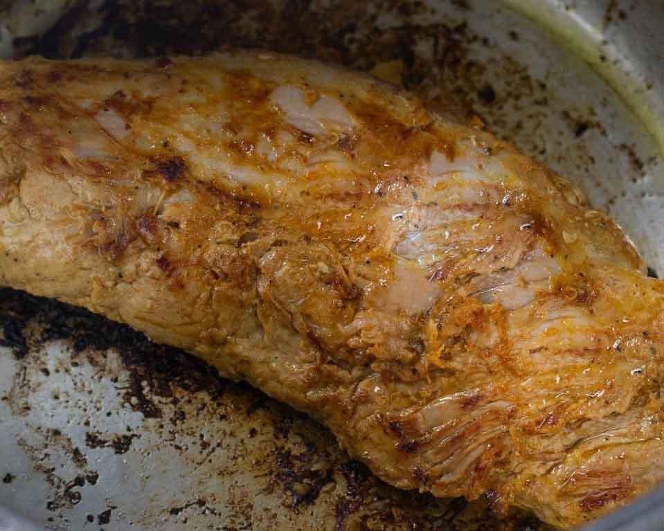 Após esse tempo confira se a carne deste lombo na pressão está macia e se o molho está apurado (escuro e espesso). Se a carne ainda estiver dura e o molho ralo, tampe e deixe cozinhar na pressão por mais 10 minutos. Depois disso é só servir com acompanhamento a gosto e desfrutar da refeição. Bom apetite!