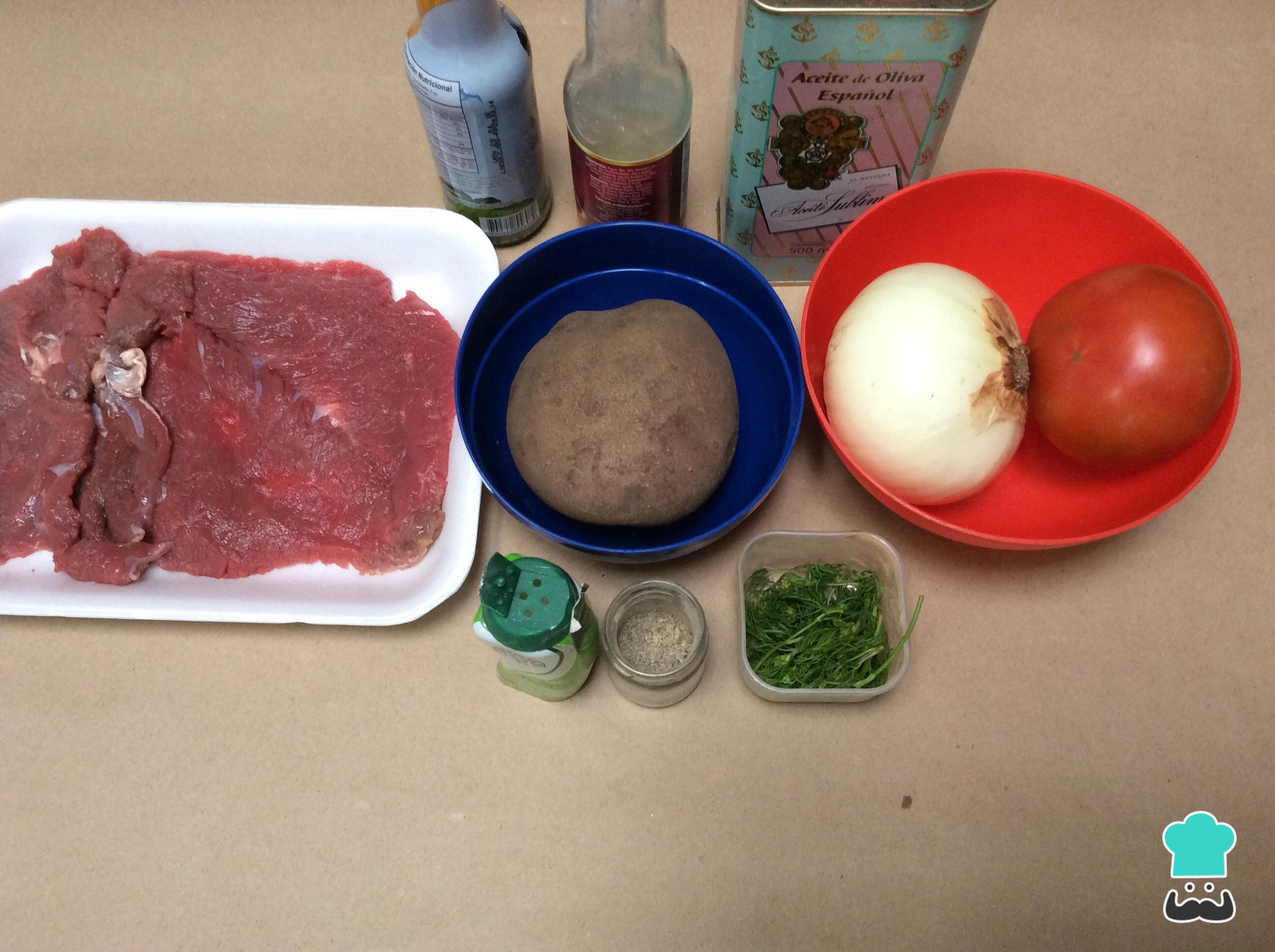 Para preparar esta receita peruana de lomo saltado, comece por reunir os ingredientes.