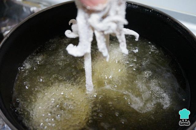 - Para saber se o óleo está quente o suficiente para fritar salpique um pouco de farinha nele: se a farinha começar a borbulhar, significa que o óleo está na temperatura certa para fritar os anéis de lula;