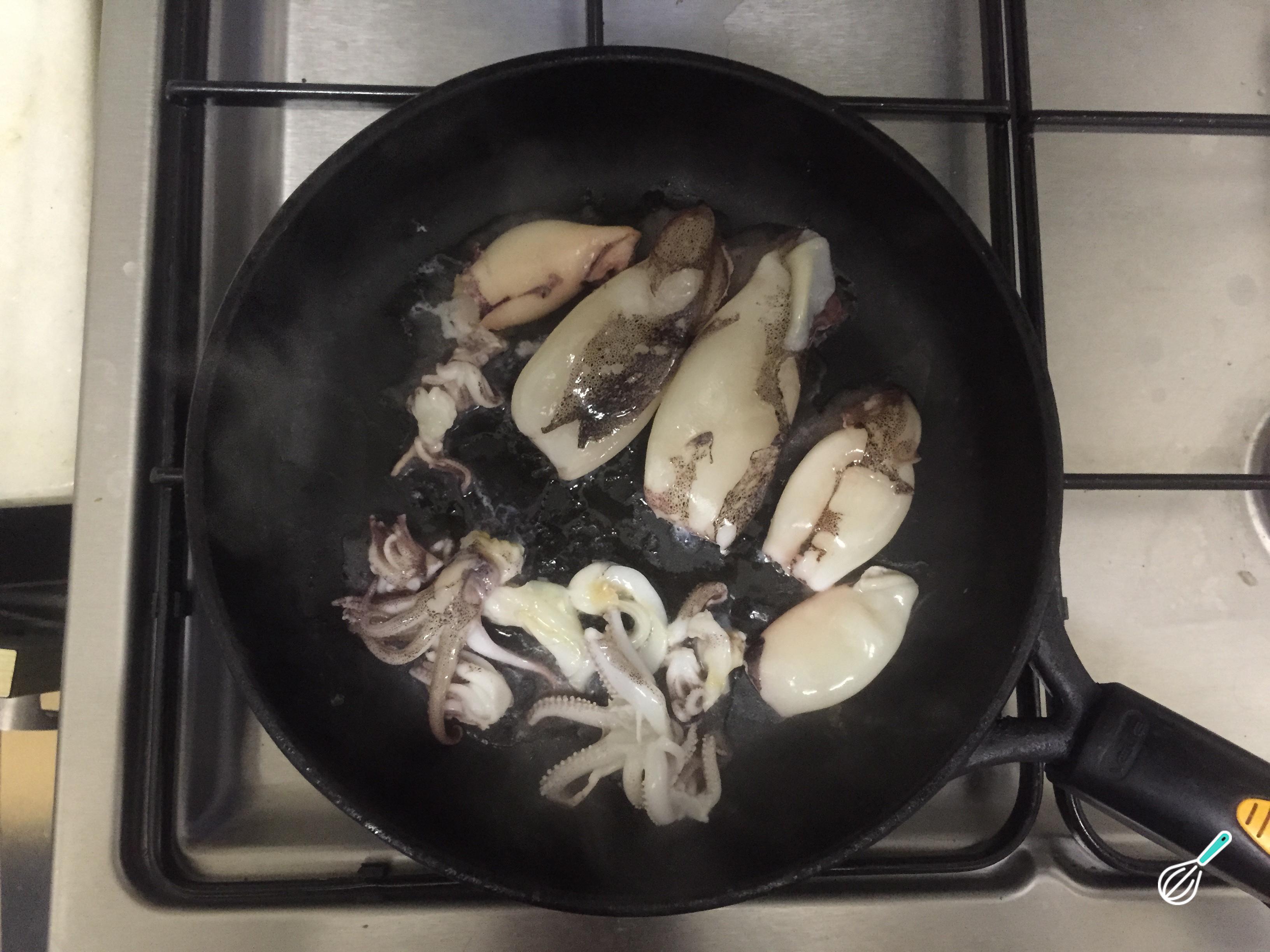 Aqueça um pouco de azeite em uma frigideira e, uma vez quente, cozinhe as lulas.