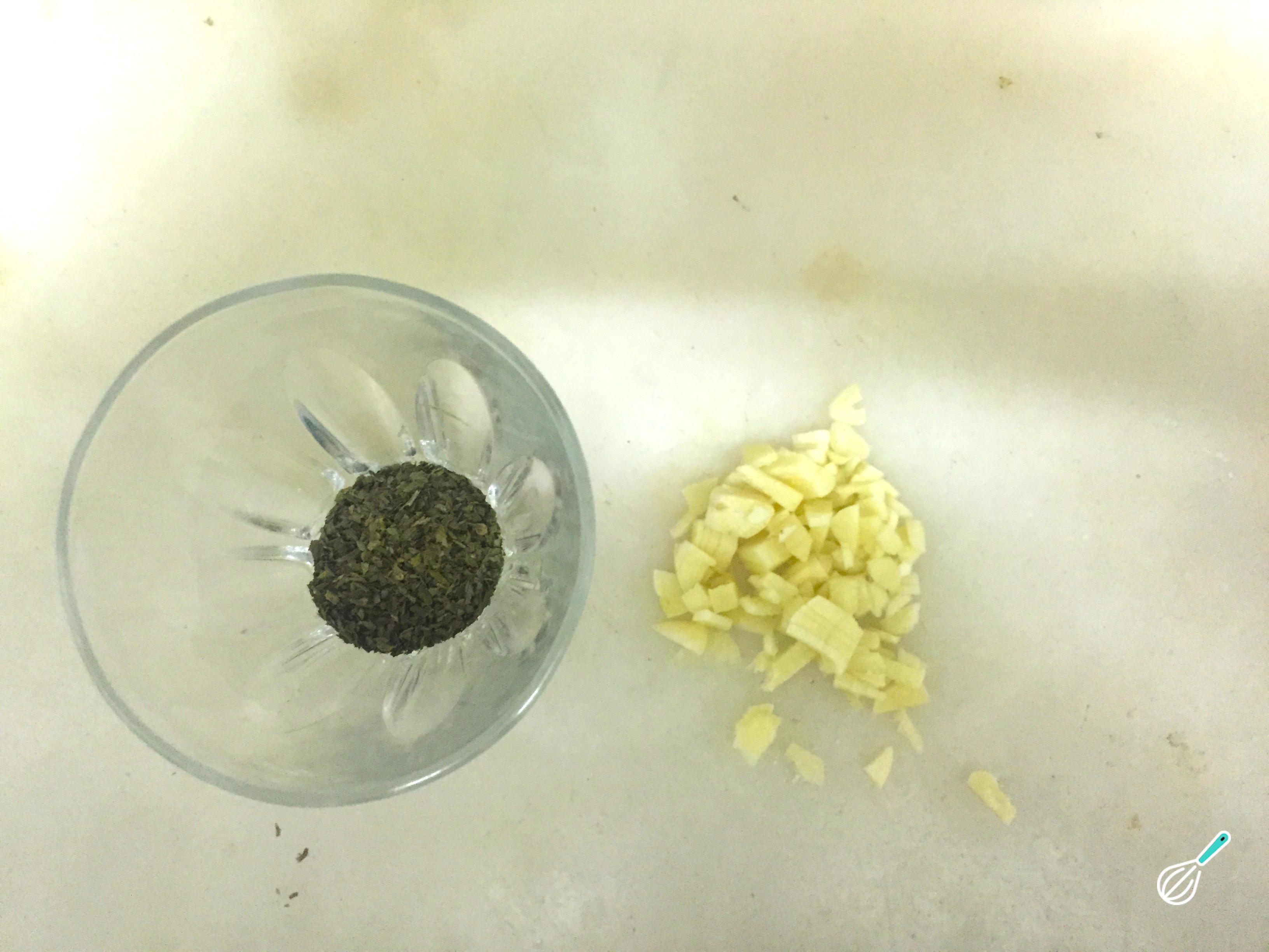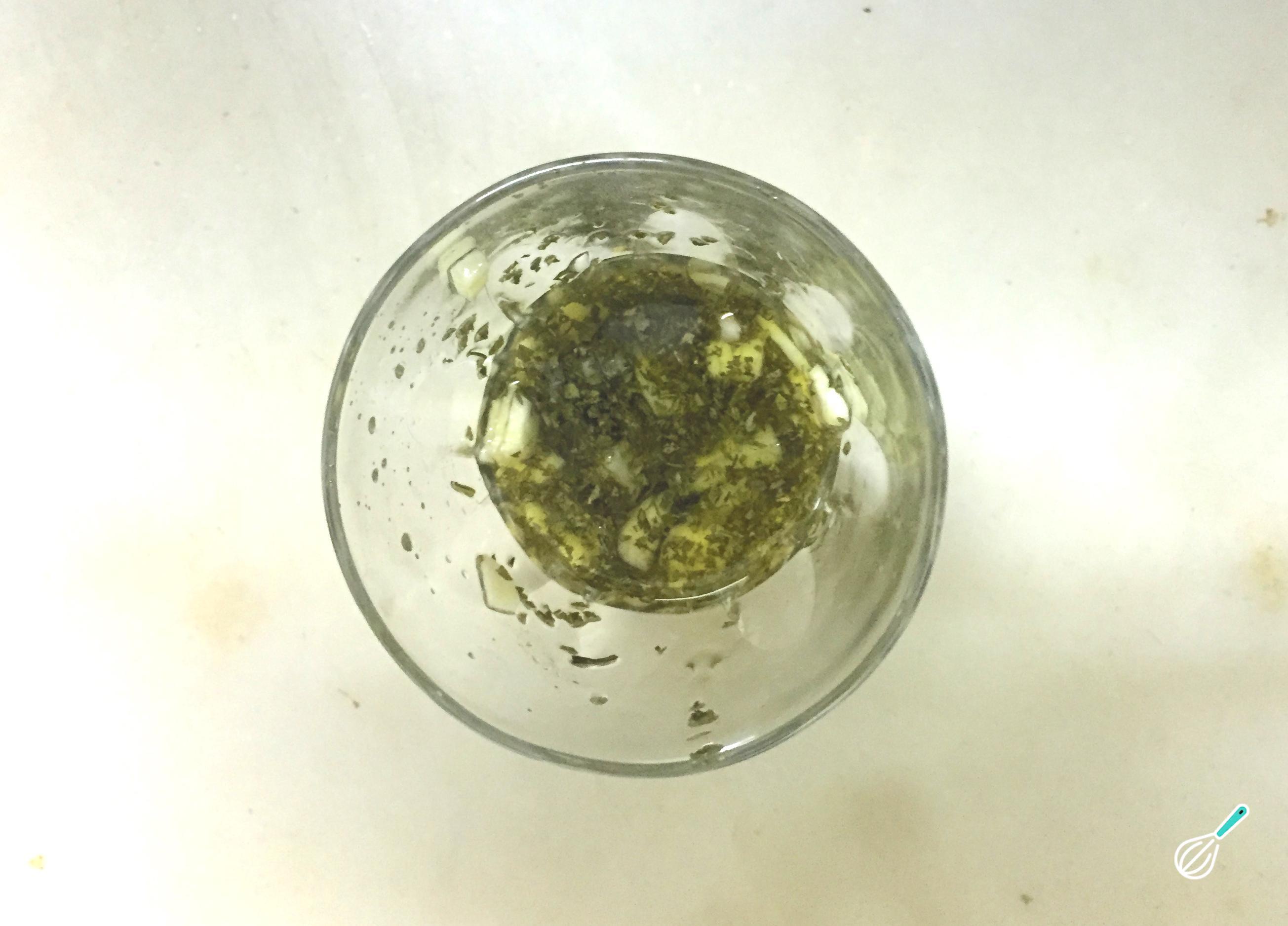 Uma vez picado alho, misture-o com a salsinha em uma tigela pequena (em um copo por exemplo), juntamente com o resto do óleo e misture. O molho das lulas está pronto!