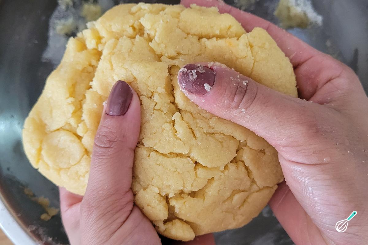 Não precisa trabalhar demais a massa, ela fica ligeiramente quebradiça. É assim mesmo. Reserve enquanto prepara o recheio.
