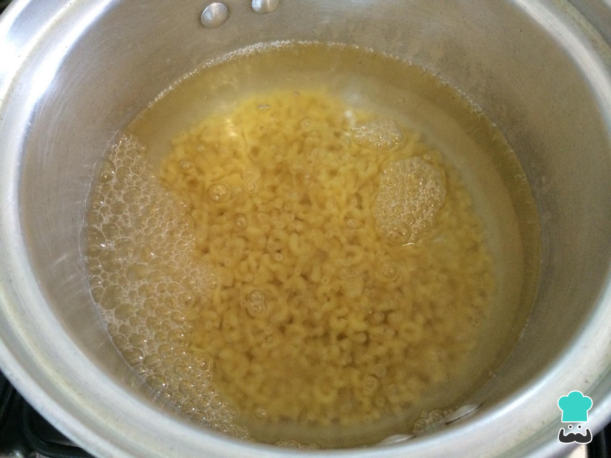 O passo seguinte do mac and a cheese tradicional é cozinhar o macarrão em uma panela com água fervente e um pouco de sal por 7 minutos, ou até que esteja al dente.