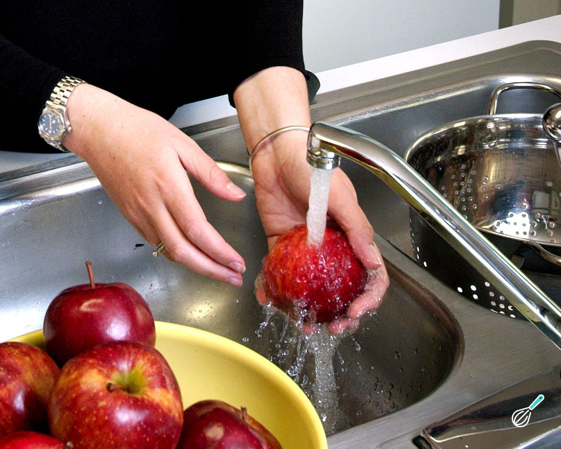 Higienize bem as maçãs. Elas devem estar bem secas e à temperatura ambiente. Remova o caule da maçã e reserve.