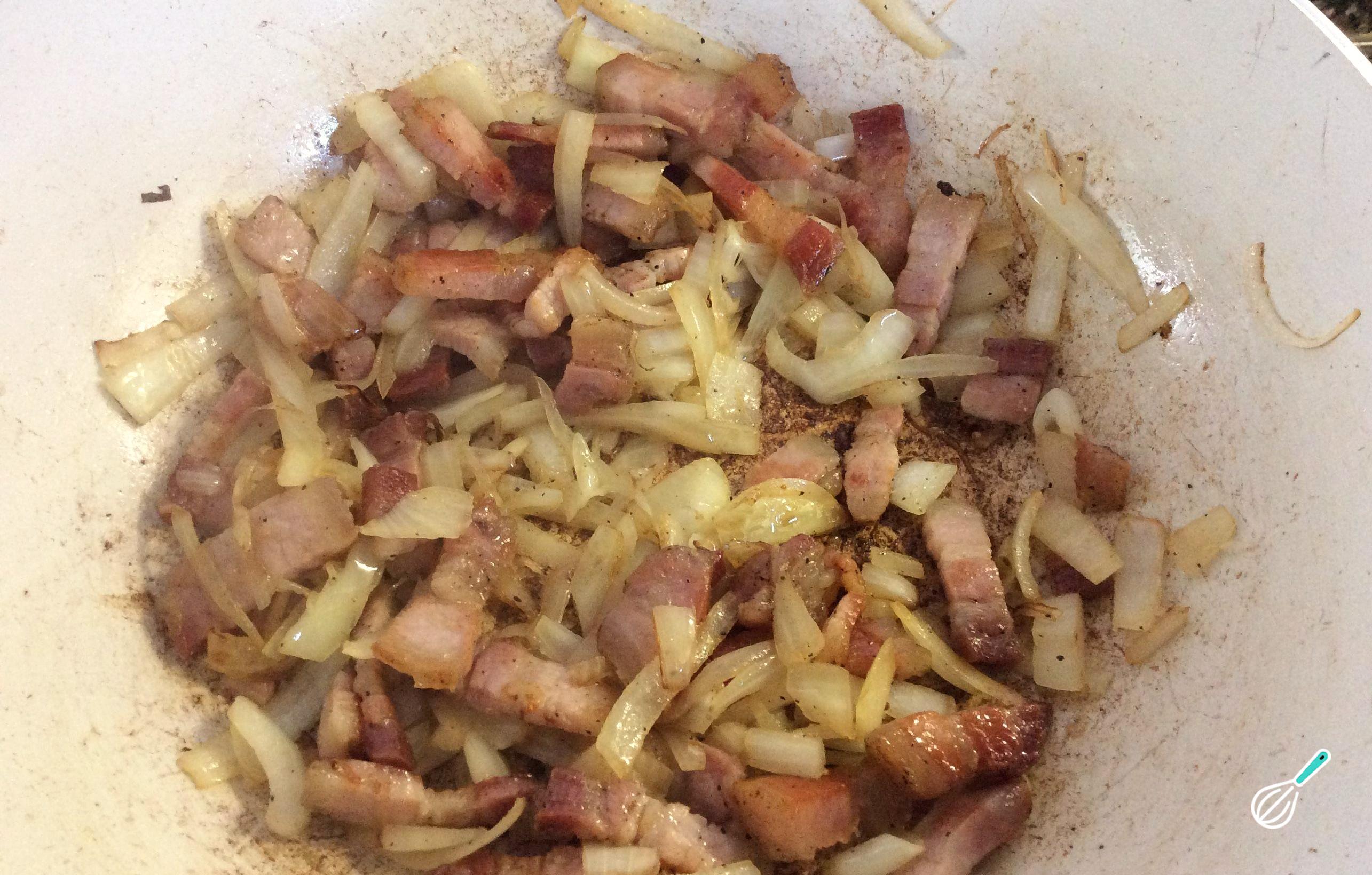 Em seguida, adicione a cebola cortada em julienne e deixe por alguns minutos, até que tomar cor.