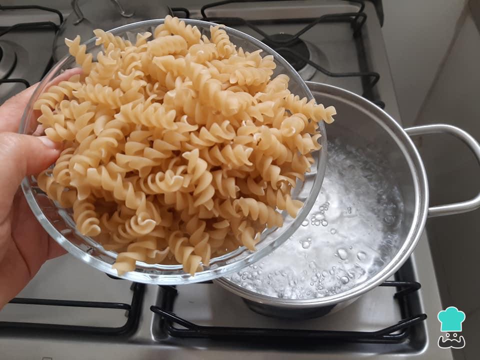 Dica: estamos usando o macarrão fusili (conhecido aqui como parafuso), mas você poderá substituir por outro tipo de macarrão, de preferência com tamanho curto com nervuras, curvas e buracos, para que o molho tenha uma maior aderência!