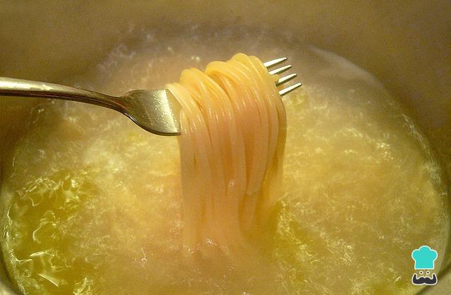 Reserve o molho e coloque o espaguete para cozinhar em uma panela com água fervendo. Deixe até que fique ao dente.