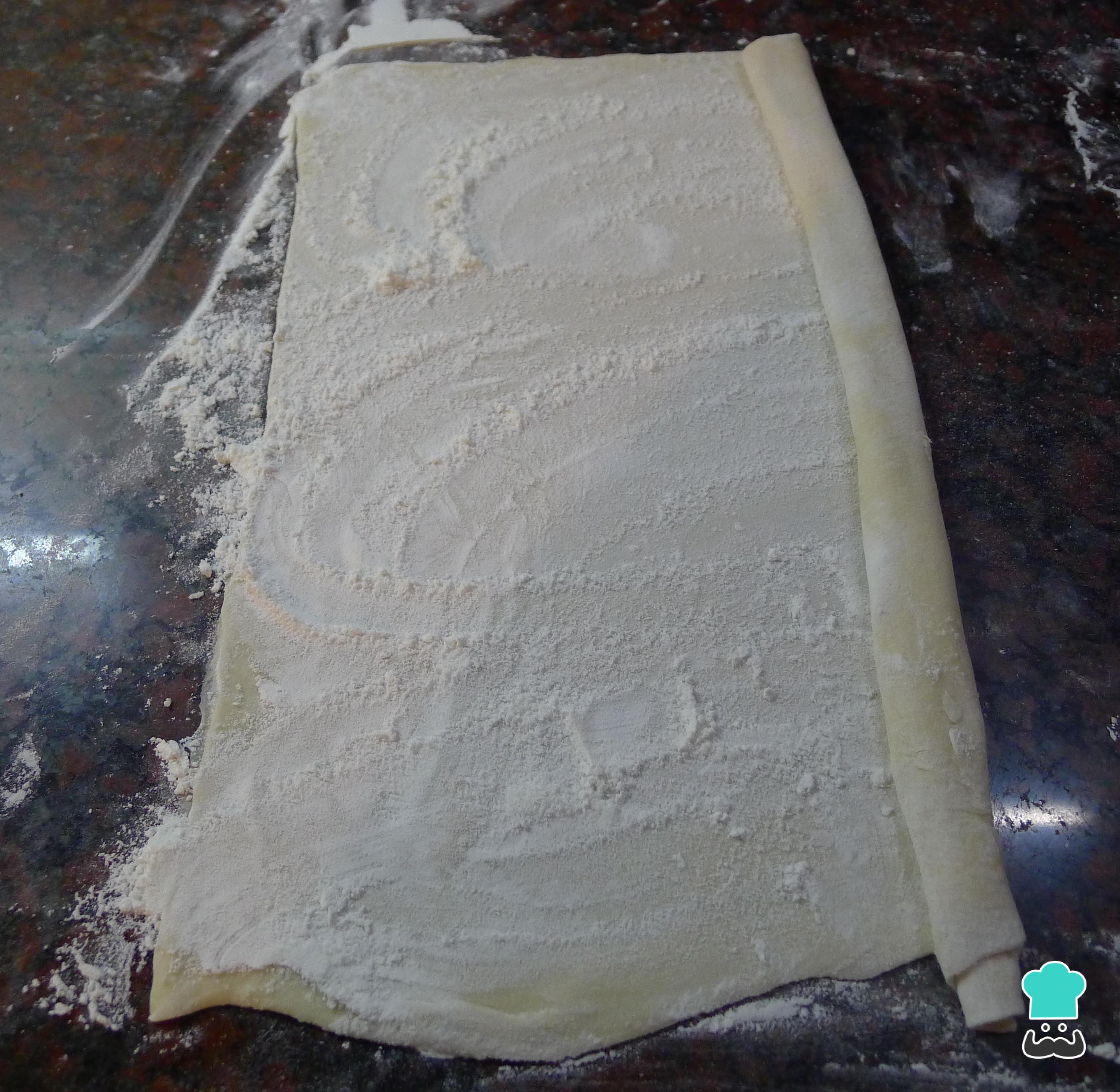Sua massa fresca está quase pronta! Em seguida abra a massa com a ajuda de um bolo até ficar bem fina, mas não demasiado para que não rompa. Polvilhe farinha e comece enrolando como um rocambole.