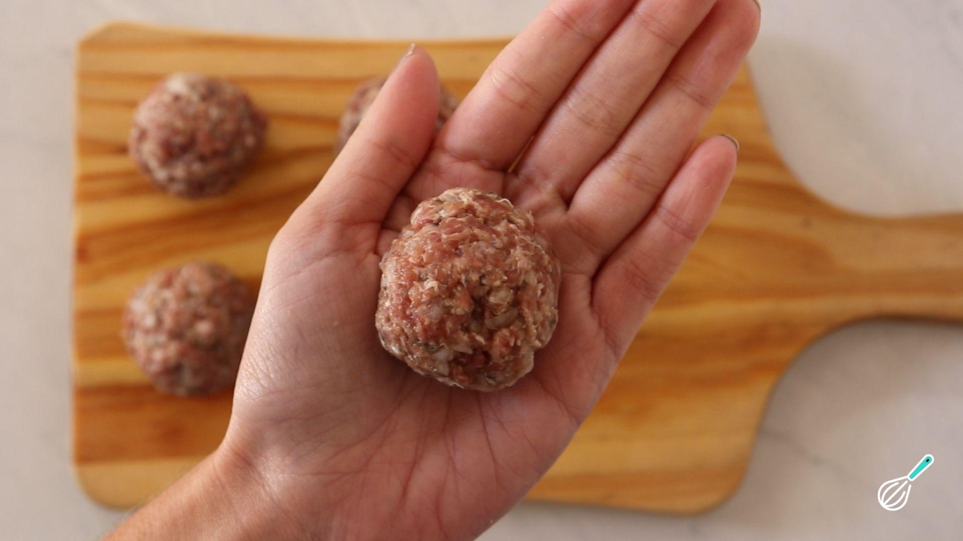 Misture bem com as mãos até todos os ingredientes ficarem bem incorporados. Modele bolinhas no tamanho que desejar.