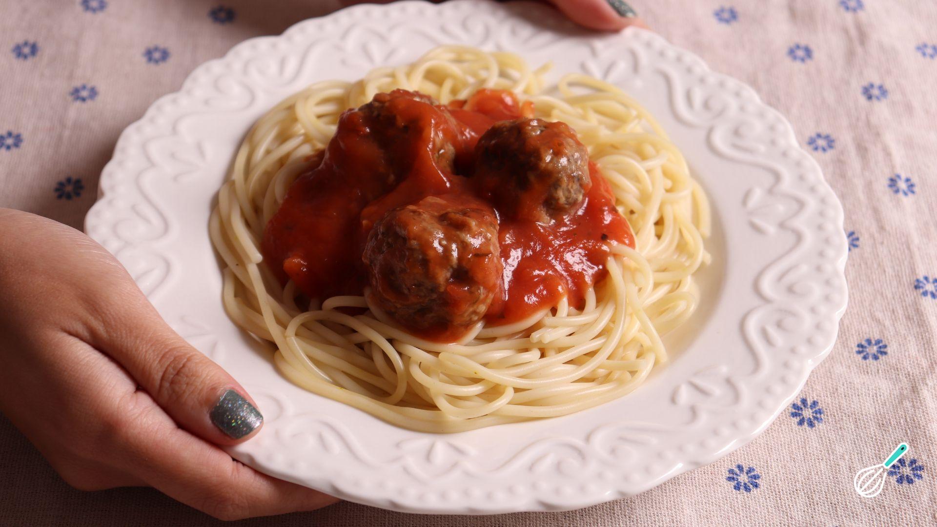 Nosso macarrão com almôndegas fica pronto em menos de 30 minutos e leva poucos ingredientes que com certeza você tem na geladeira. Para agilizar o preparo, nós vamos usar molho de tomate pronto mas você pode usar a versão caseira se quiser.