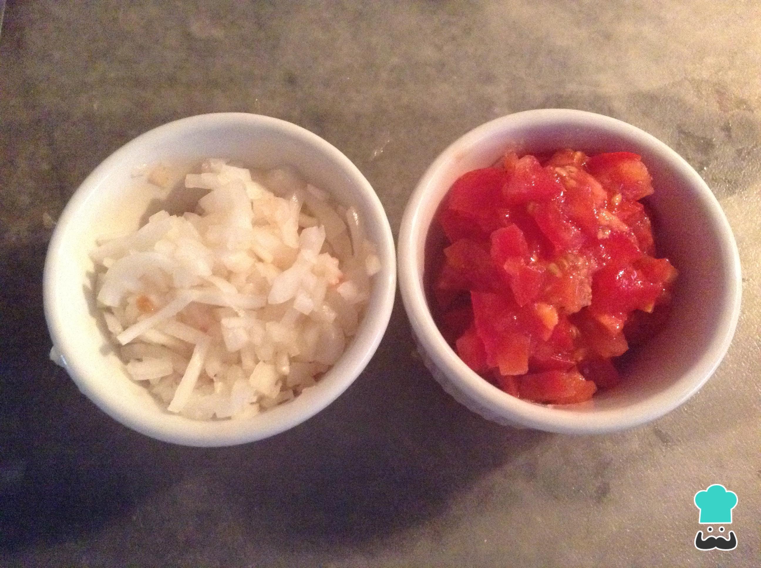 Lave e pique o tomate e a cebola em cubos pequenos.