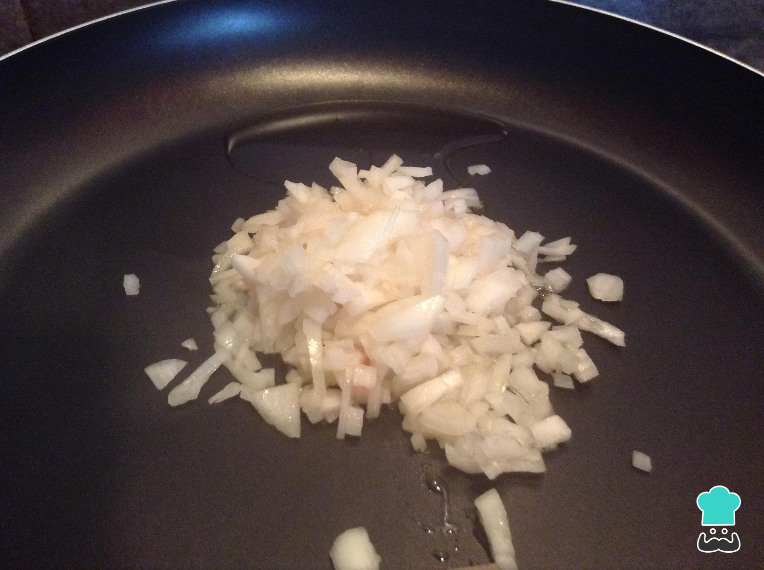 Leve uma frigideira ao fogo médio com um pouco de azeite e salteie nele a cebola.