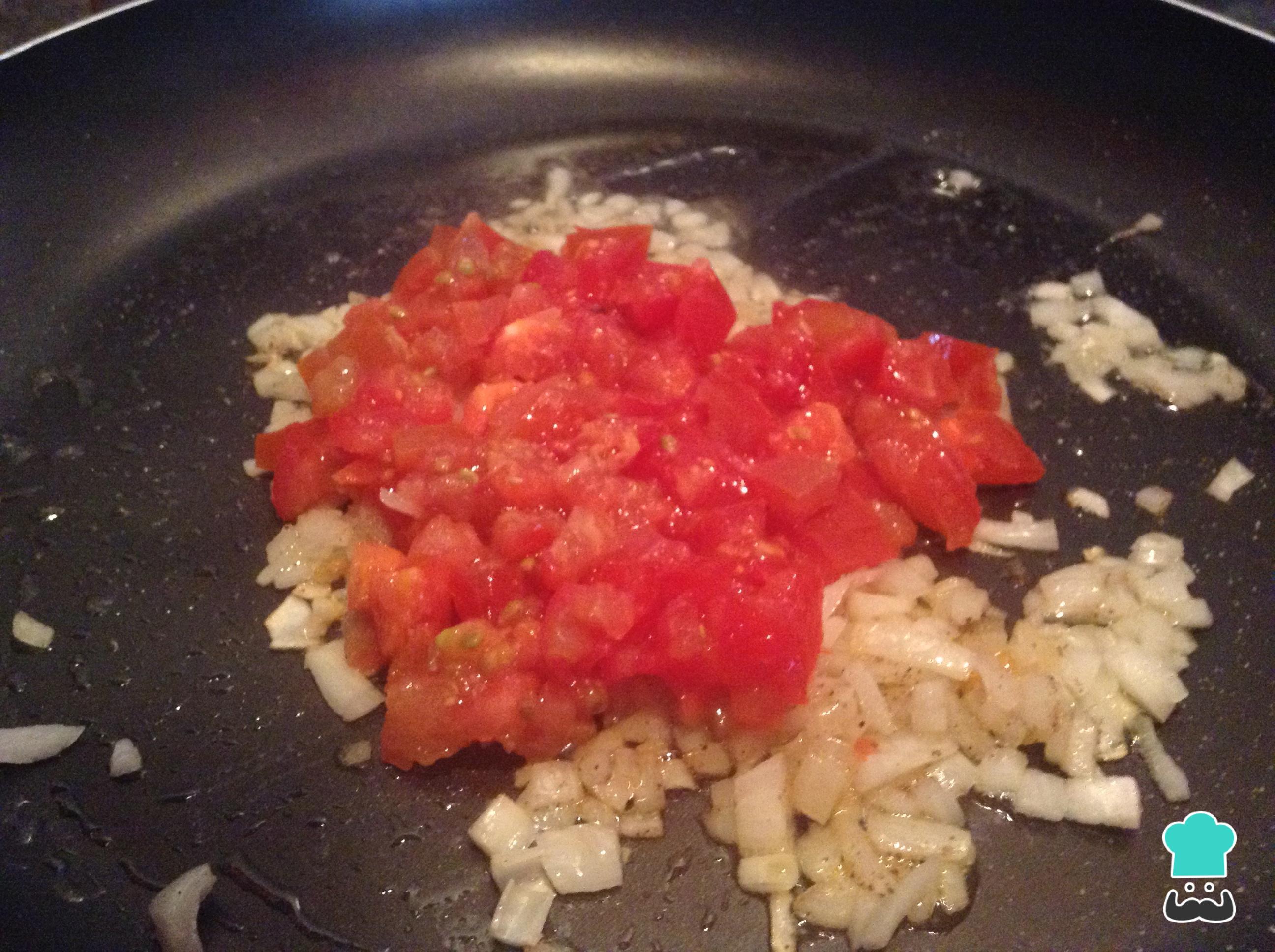 Assim que a cebola estiver transparente, adicione o tomate.