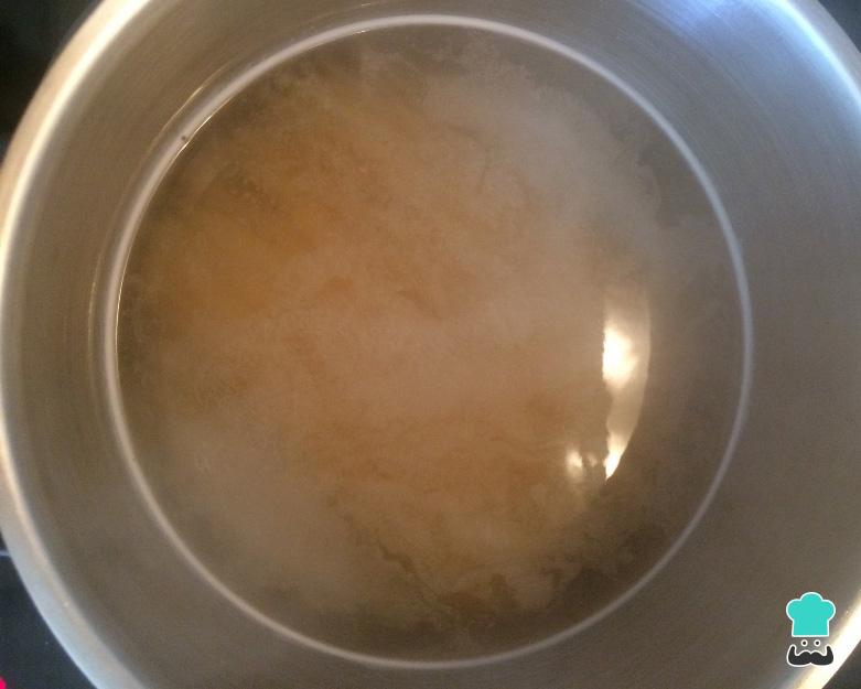 Leve ao fogo uma panela com água e sal e, quando estiver fervendo, acrescente o espaguete. Cozinhe o macarrão durante o tempo indicado na embalagem e, quando estiver pronto, escorra e reserve.