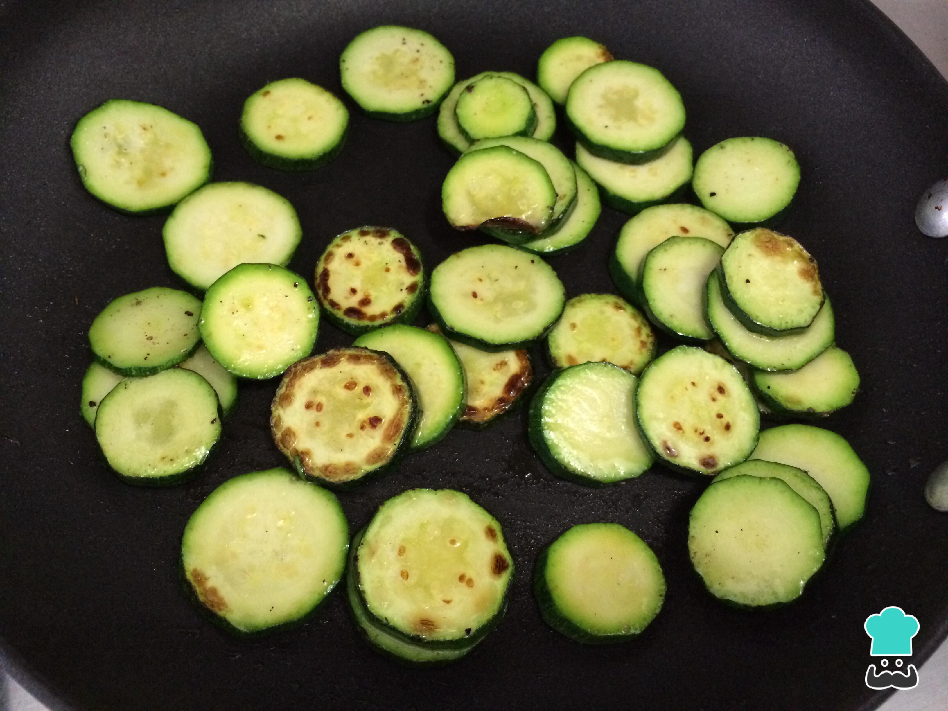 Na mesma frigideira, com um pouco mais de óleo, realize o mesmo procedimento com a abobrinha cortada às rodelas. Tempere com sal e pimenta e reserve.