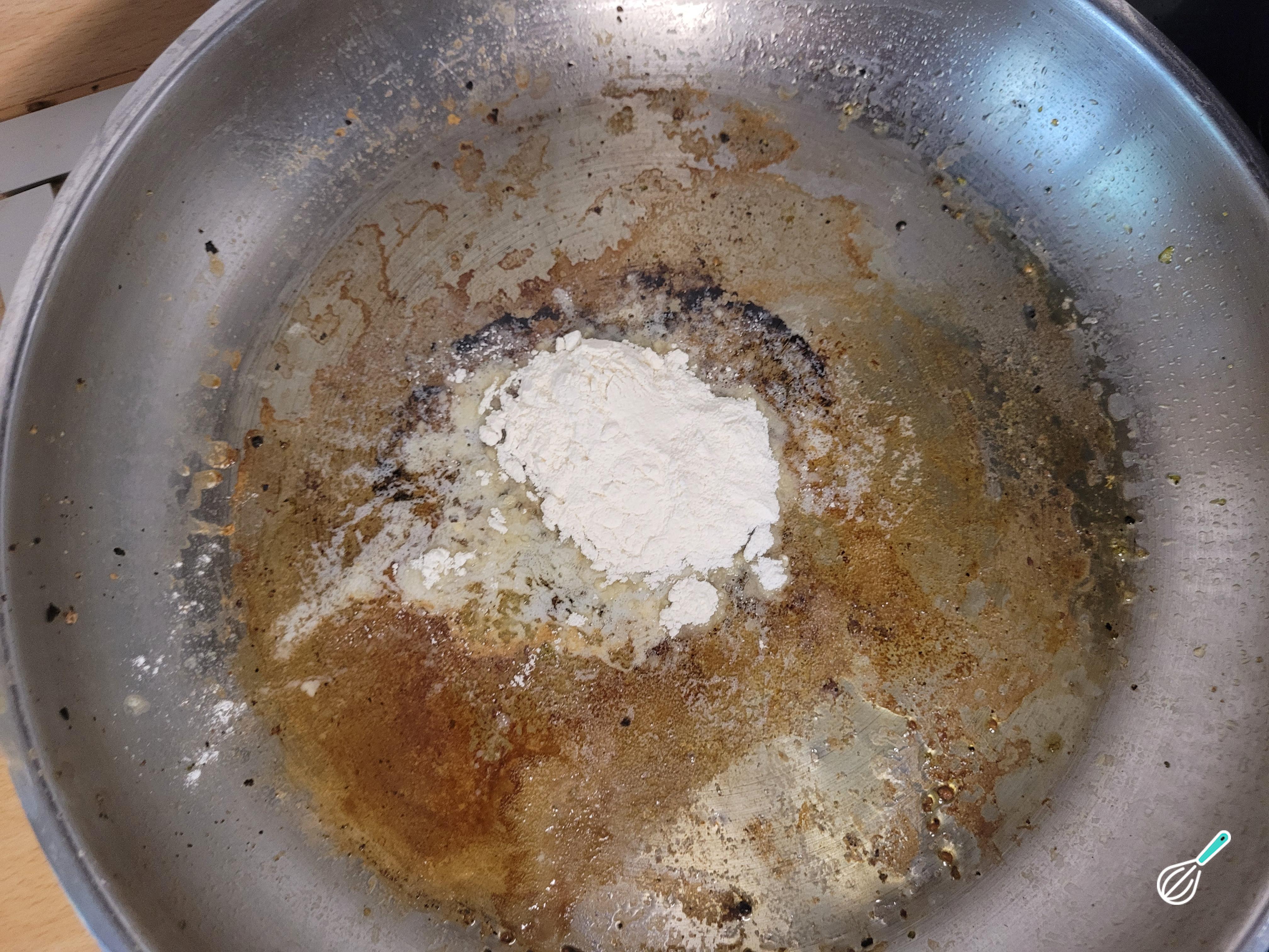 Quando o brócolis estiver macio, reserve e na mesma frigideira adicione a manteiga e a farinha para formar um roux que vai engrossar o molho.