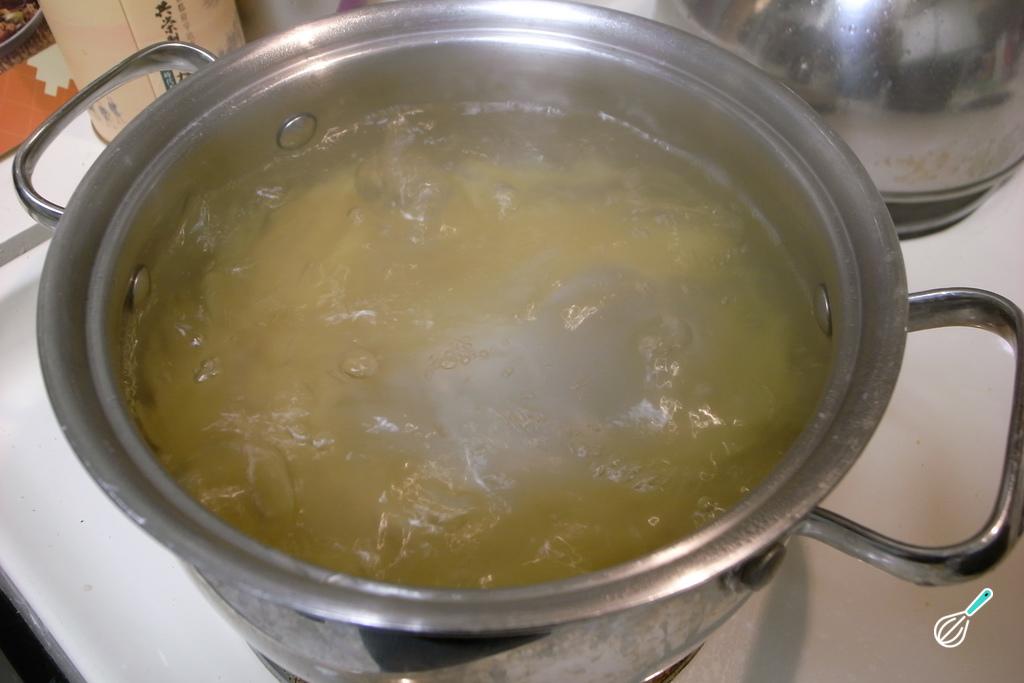 Para começar a fazer seu macarrão com calabresa, cozinhe o macarrão. Quando estiver al dente, retire e reserve.