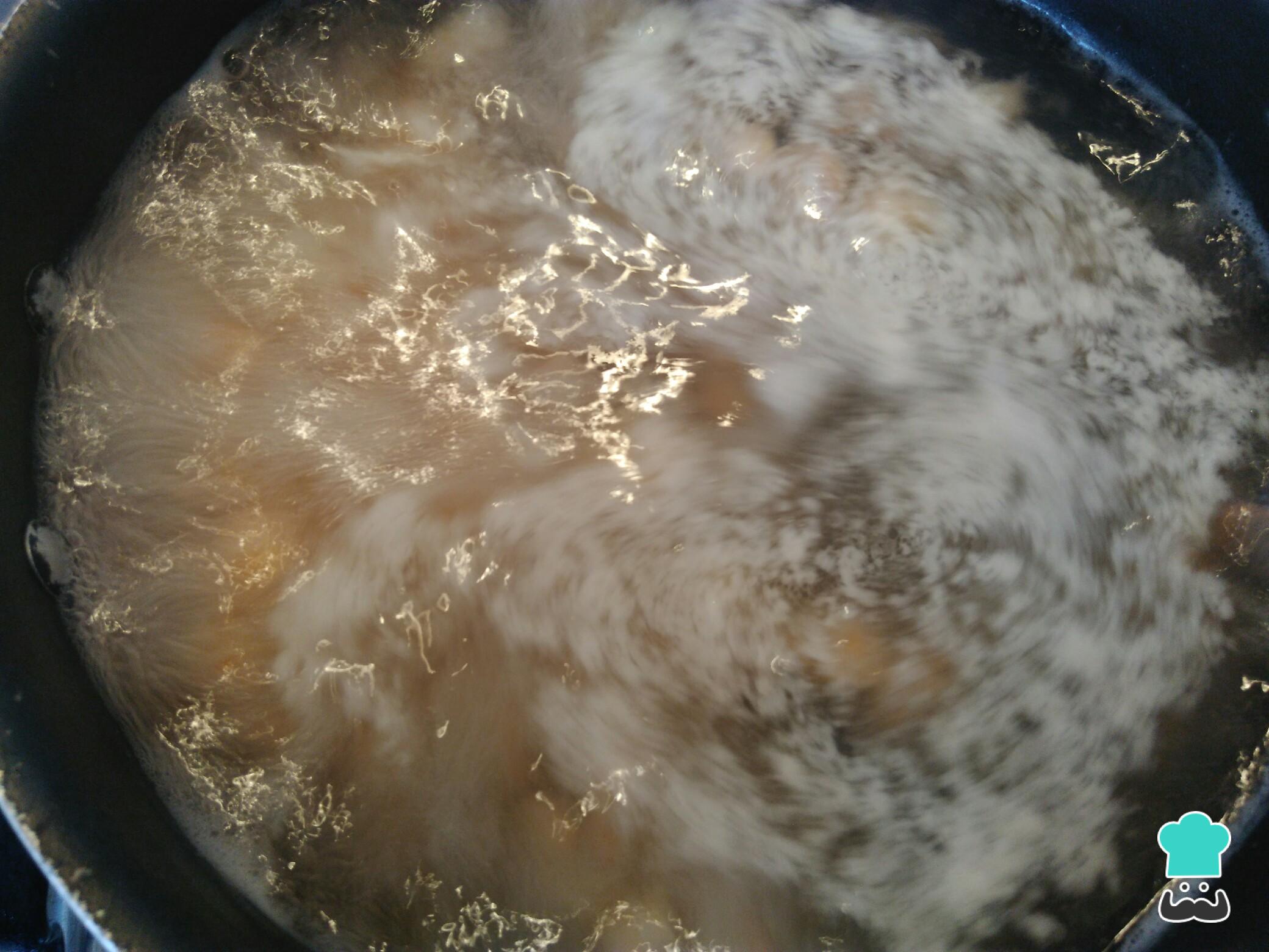 Leve ao fogo uma panela com água e sal e, quando ferver, junte o macarrão e cozinhe pelo tempo indicado na embalagem (cerca de 7-8 minutos). Assim que estiver pronto, escorra e coloque em uma travessa.