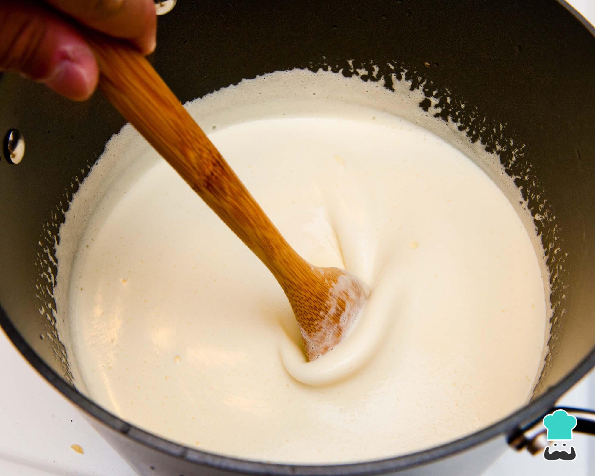 Para o molho branco coloque em uma panela 350 ml de leite com sal a gosto. Ligue o fogo baixo e enquanto isso dissolva a maisena no restante de leite, ainda em temperatura ambiente ou gelado. Adicione esses 250 ml de leite ao que já está no fogo e mexa até engrossar.