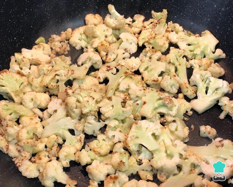 Refogue por 5 minutos ou até a couve flor ficar dourada.