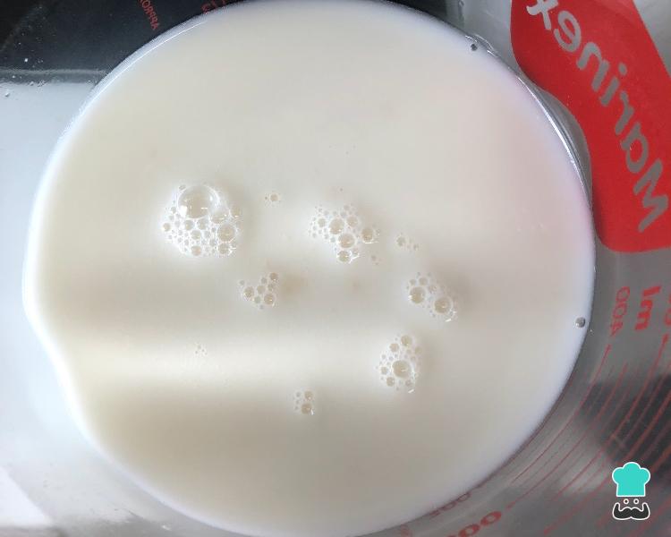 Em um recipiente, coloque o amido de milho e o leite e misture bem. São estes ingredientes que, juntos, vão engrossar o molho branco.