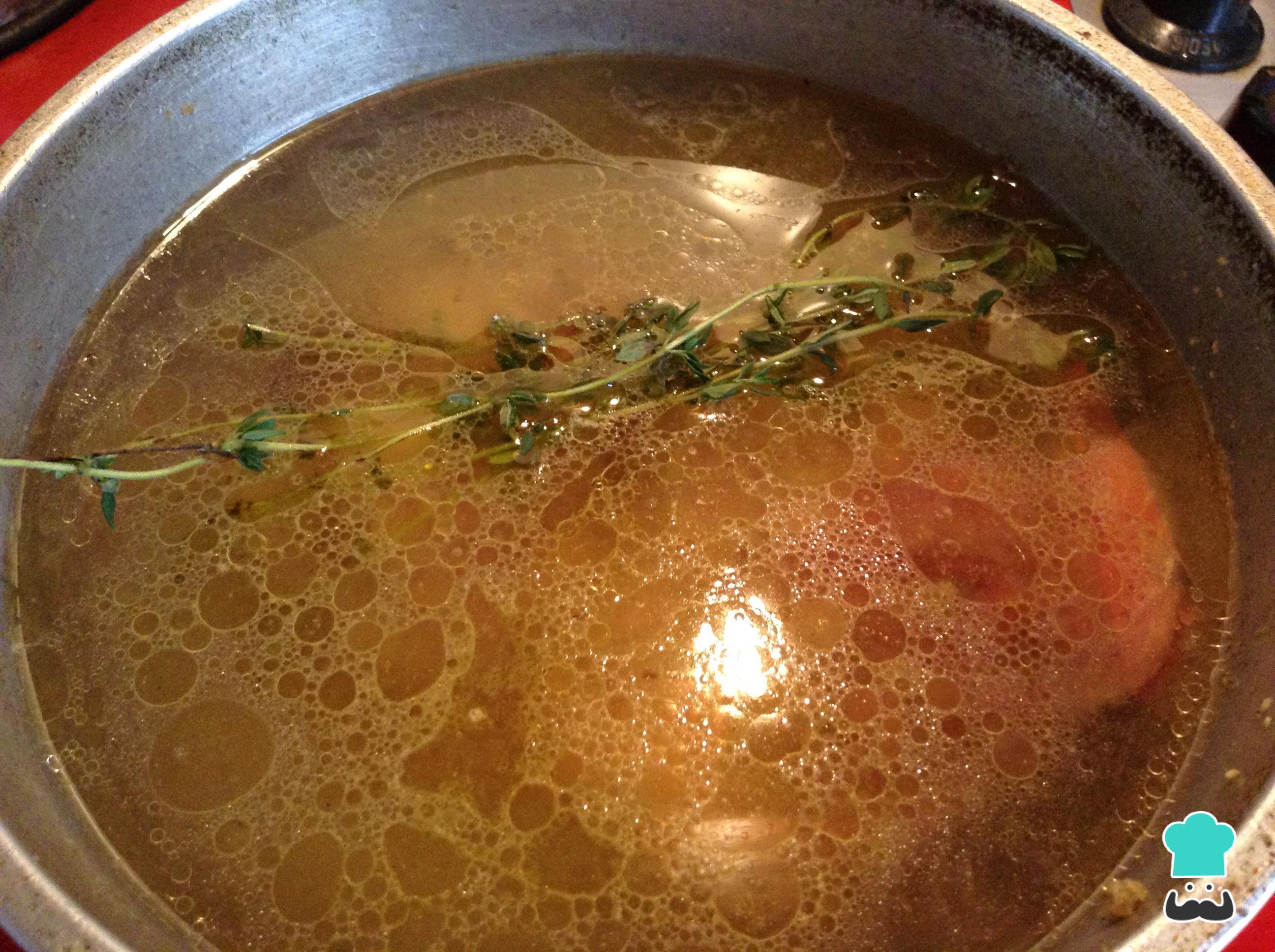 Adicione água até cobrir, se quiser adicione também um pouco de tomilho, e cozinhe em fogo médio durante 25-30 minutos. No final desligue o fogo e deixe esfriar.
