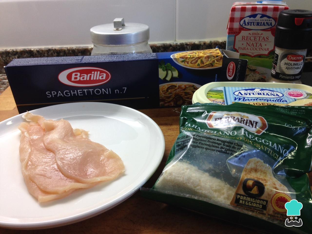 Para preparar o macarrão com frango e molho Alfredo, comece por reunir os ingredientes. Para o molho vai precisar de manteiga, queijo parmesão e creme de leite. Quanto ao macarrão, pode optar por espaguete ou fettuccine. Para o frango, usei a parte do peito.