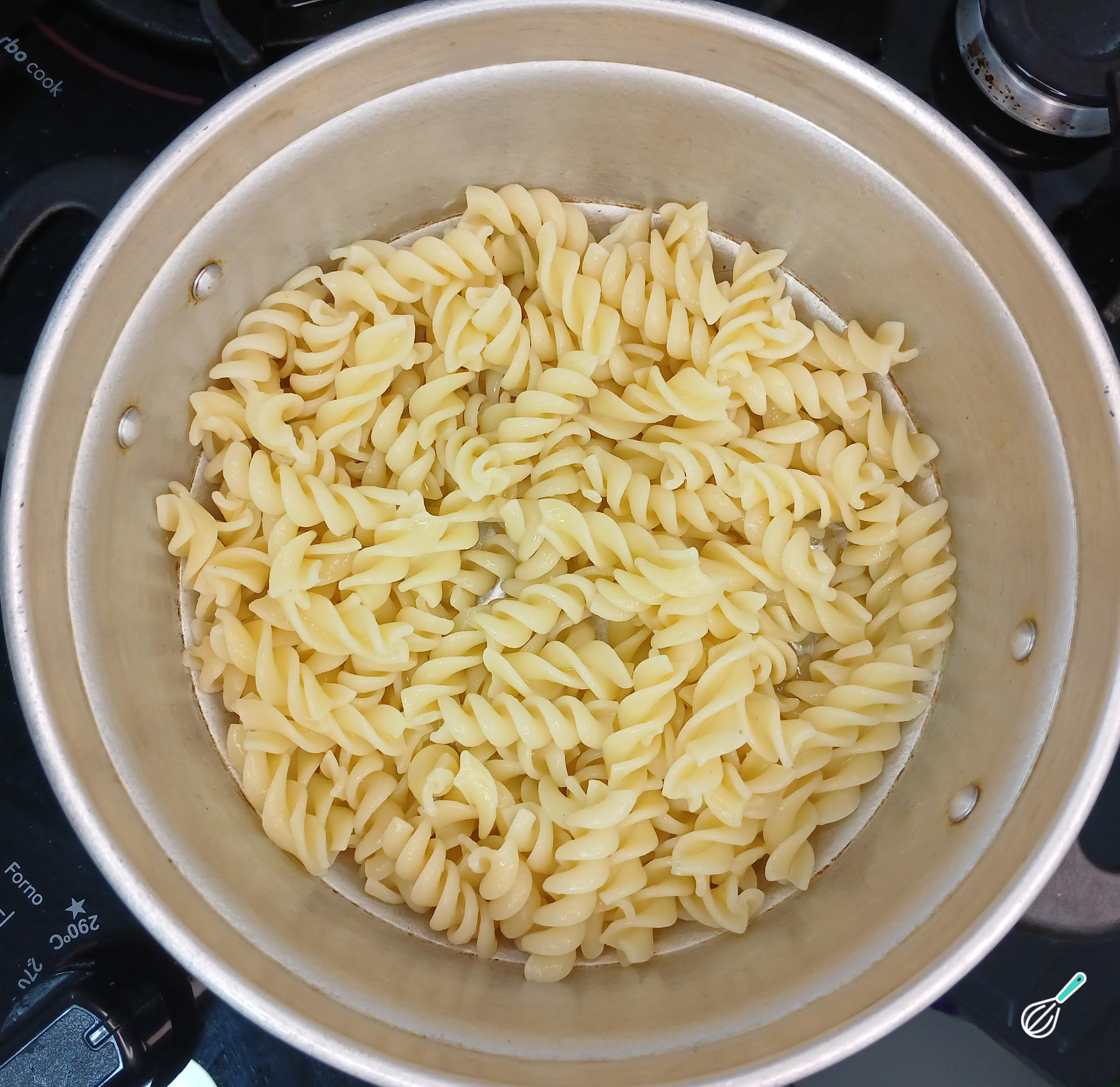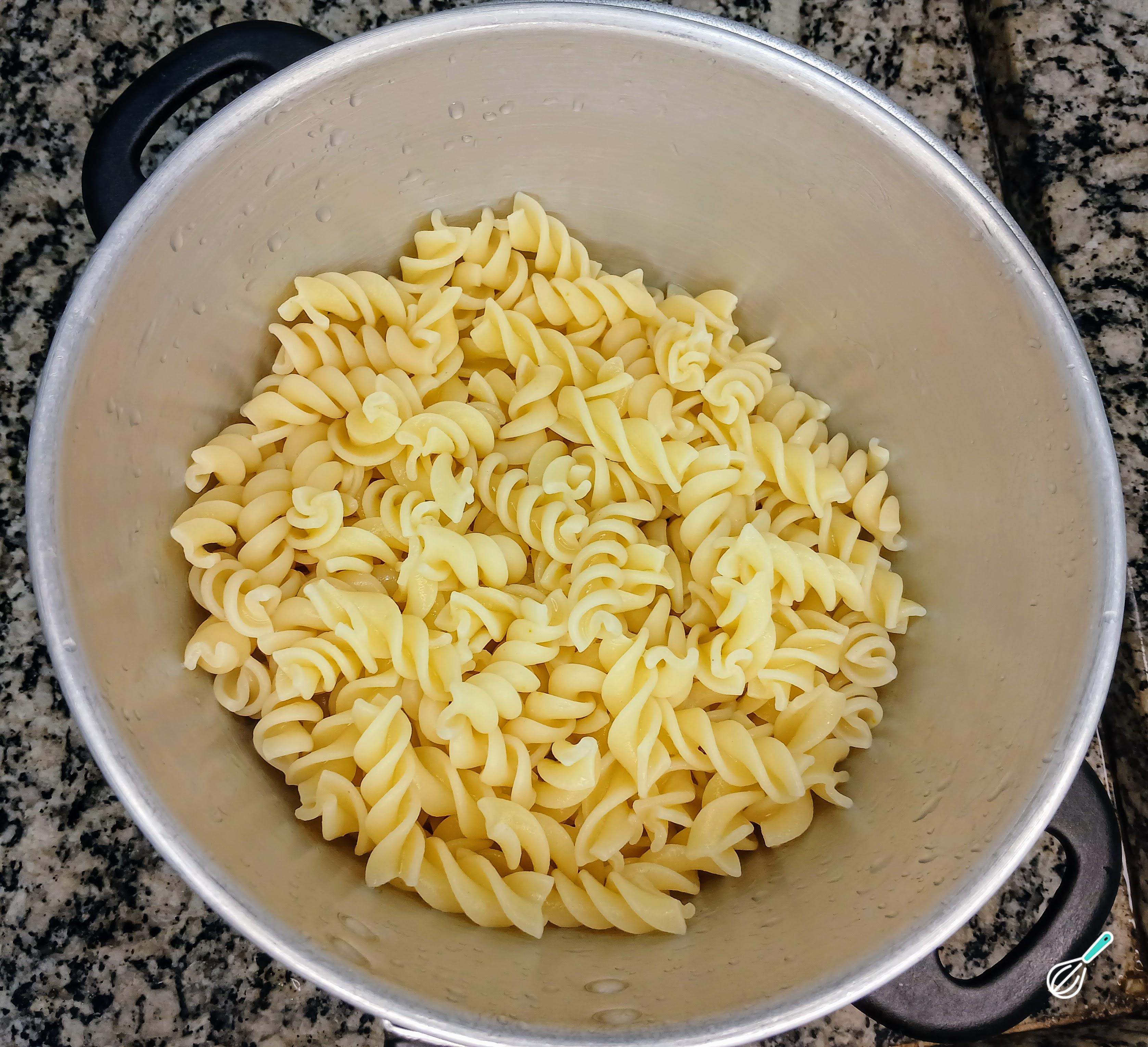 Dica: O macarrão fusilli ou parafuso pode ser substituído por outro de sua preferência. O ponto do macarrão também pode variar, se preferir al dente cozinhe menos e se preferir mais molinho, cozinhe mais.