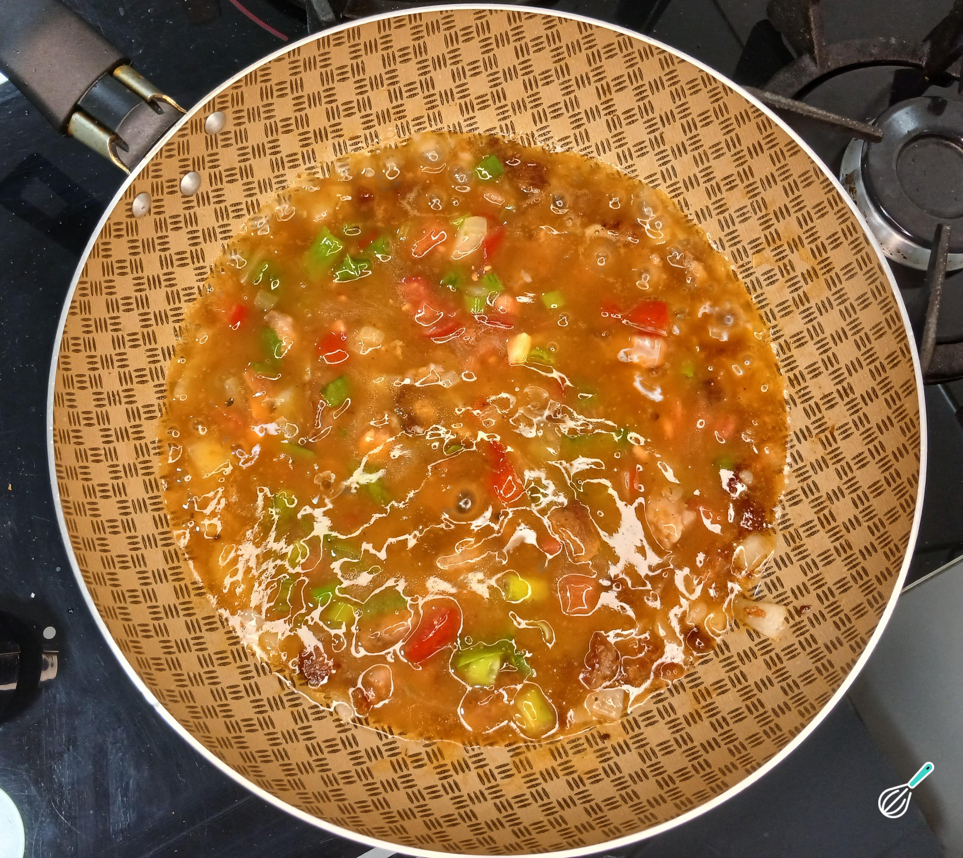 Em seguida, adicione o molho de tomate, a cebolinha verde e a salsinha e o tomate picadinho. Adicione os temperos, sal e pimenta. Mexa tudo e deixe refogar e apurar em fogo baixo, depois de pronto desligue e reserve, prove e se necessário acerte sal e pimenta.
