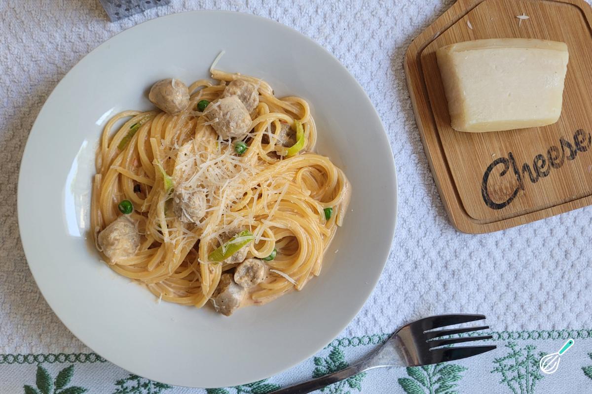 Seu macarrão com linguiça toscana e creme de leite está pronto para ser servido.