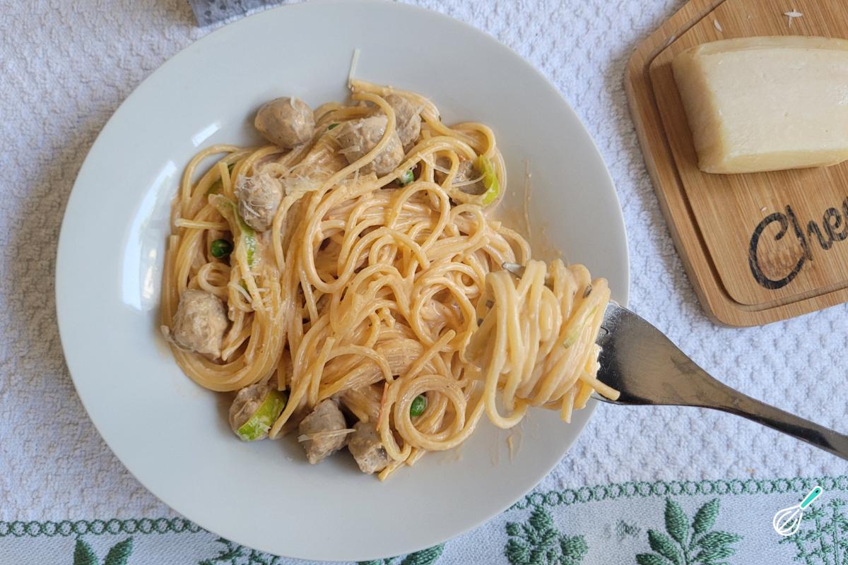 Escolhi o macarrão spaghetti, mas você pode usar qualquer massa longa ou curta que preferir.