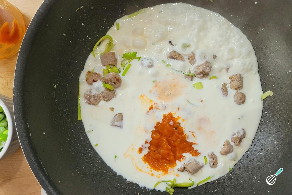 Como fazer Macarrão com linguiça toscana e creme de leite: