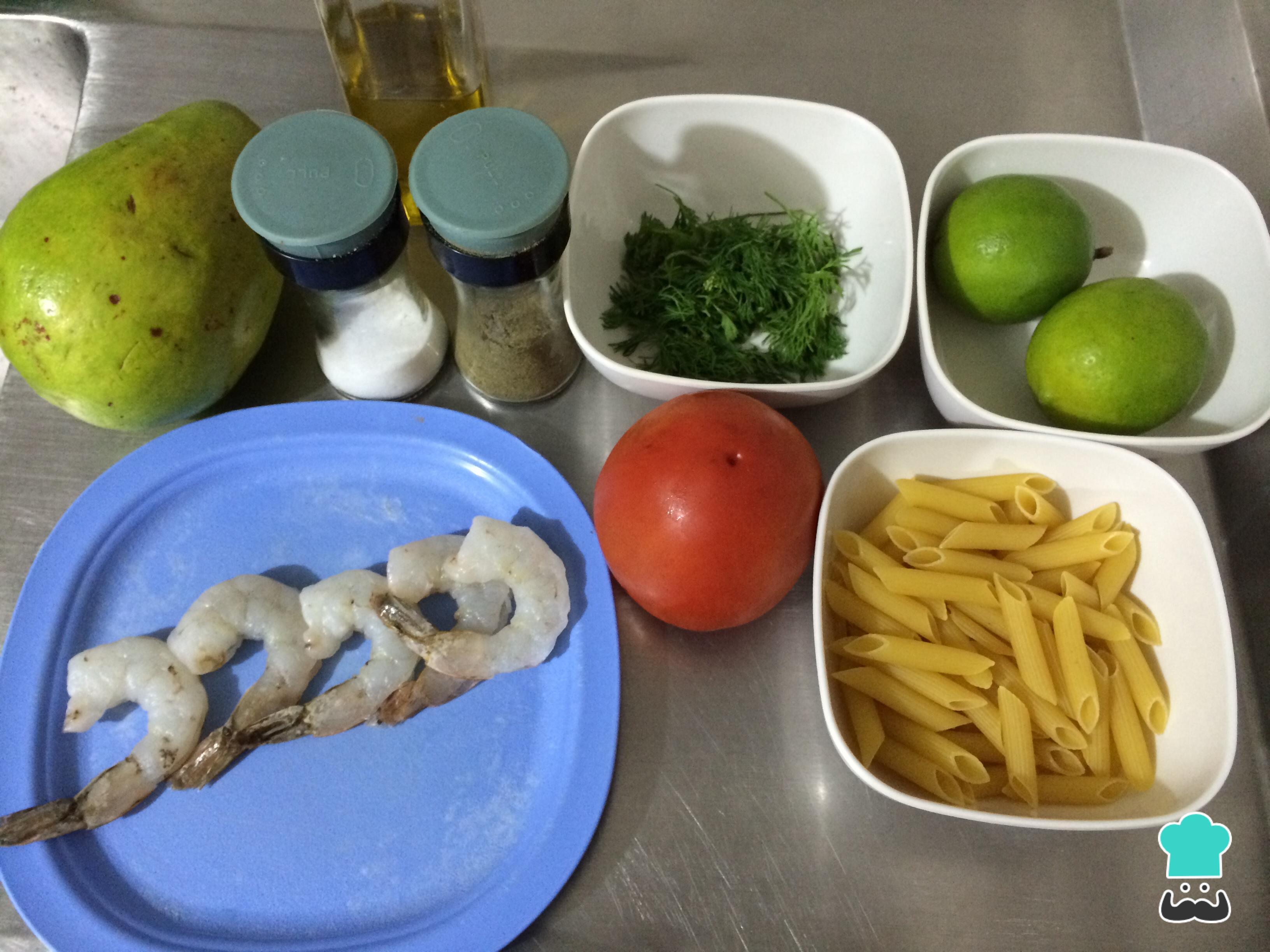 Antes de fazer este macarrão com molho de abacate o primeiro passo é organizar todos os ingredientes.