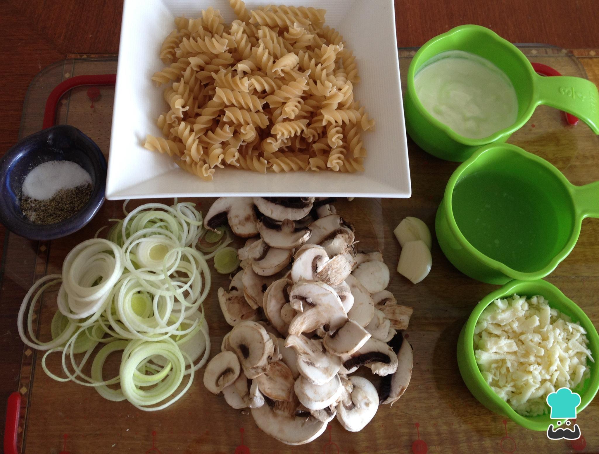 Como fazer Macarrão com molho de cogumelos, queijo e alho-poró: