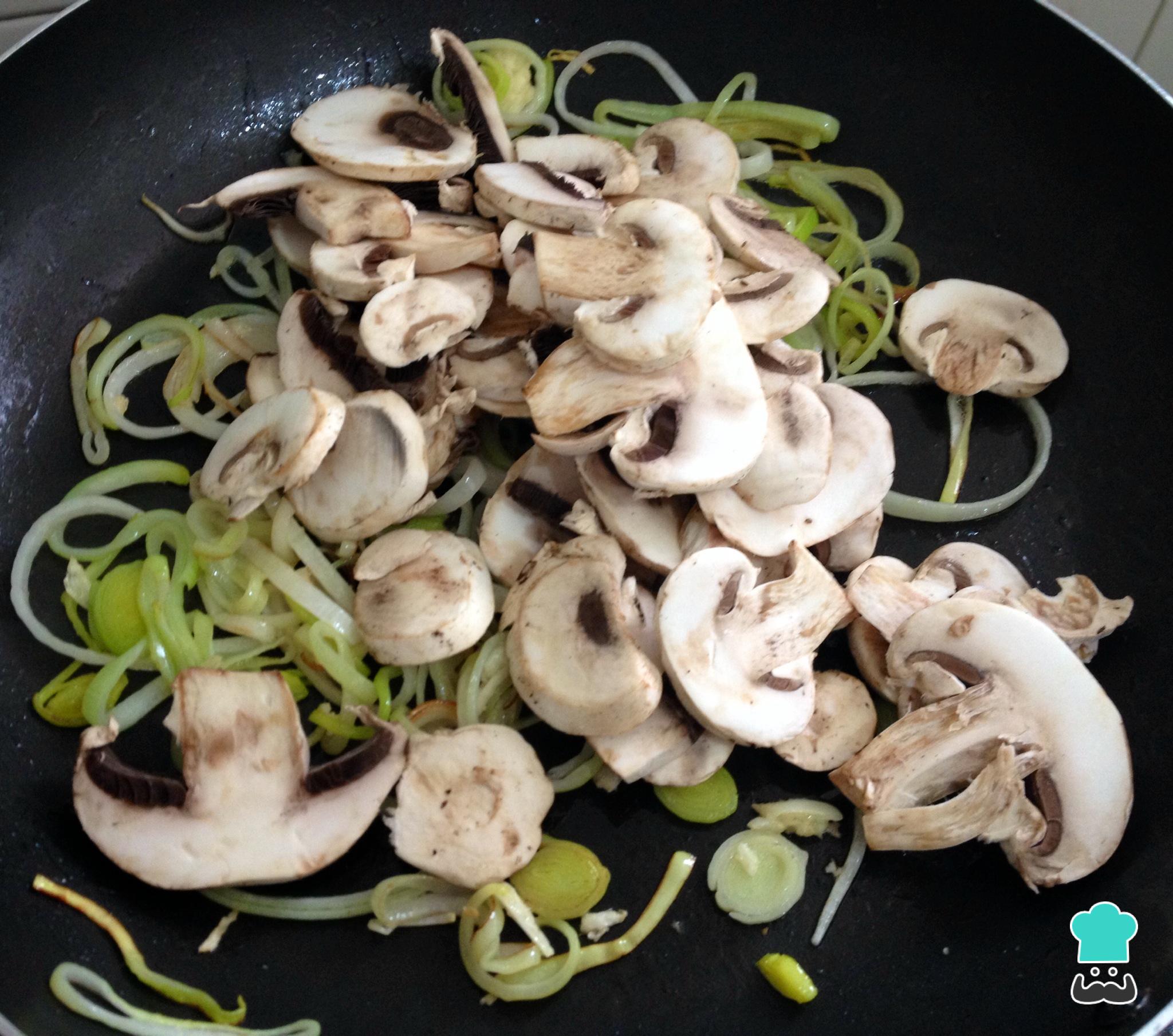 Adicione os cogumelos cortados em fatias e cozinhe por 1 minuto.