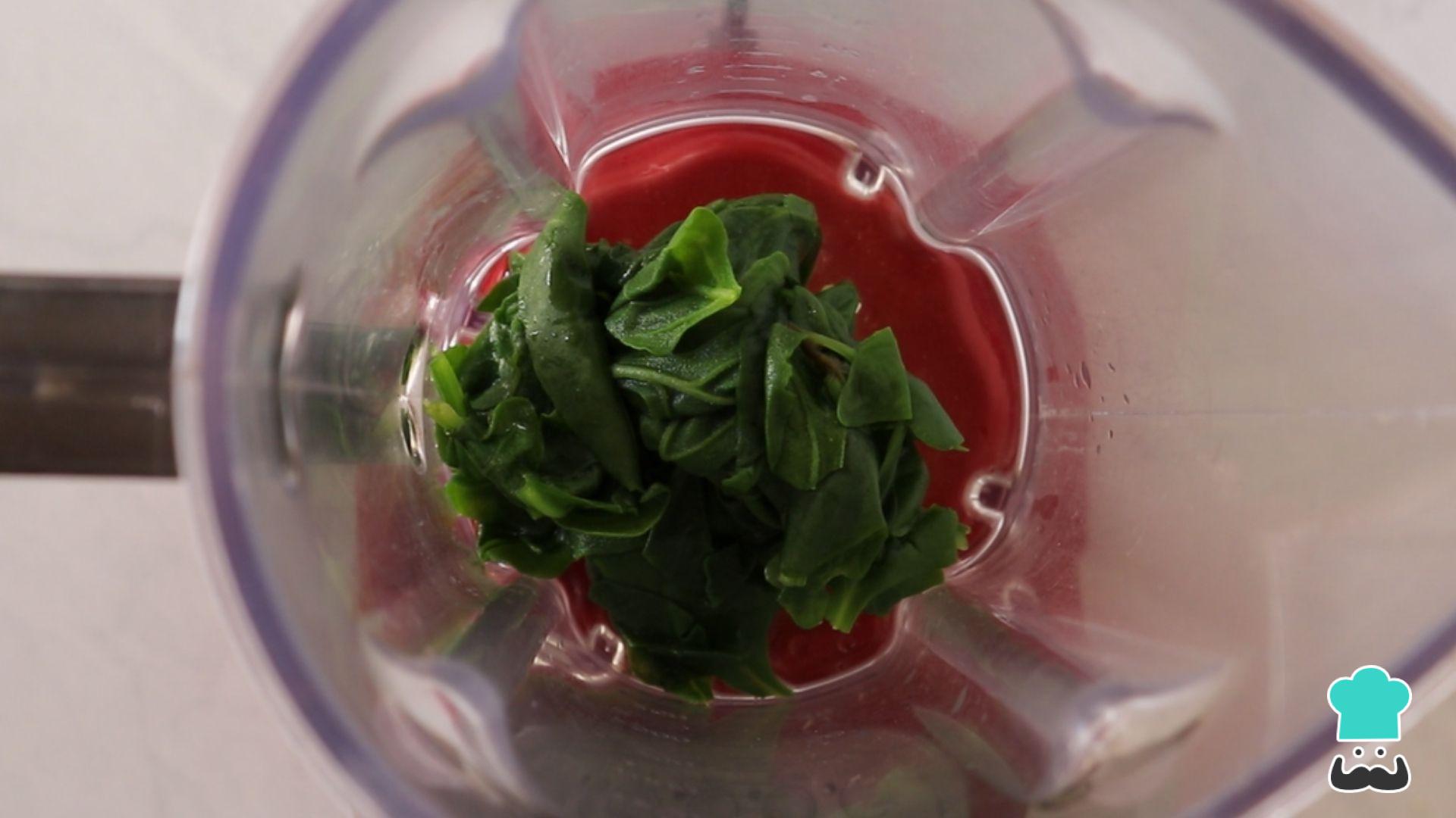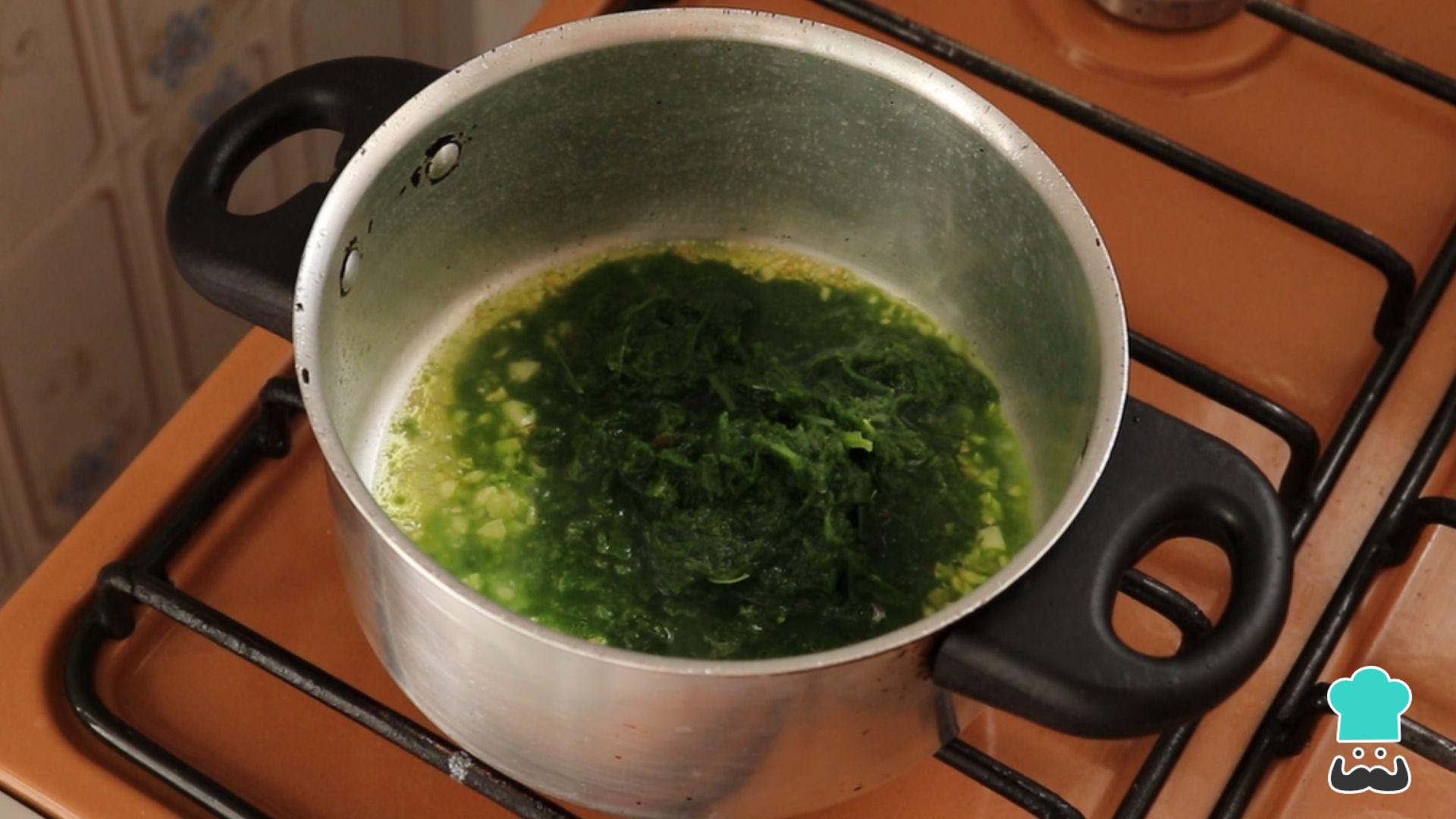 Agora bata no liquidificador o espinafre com 4 colheres de sopa da água do cozimento.