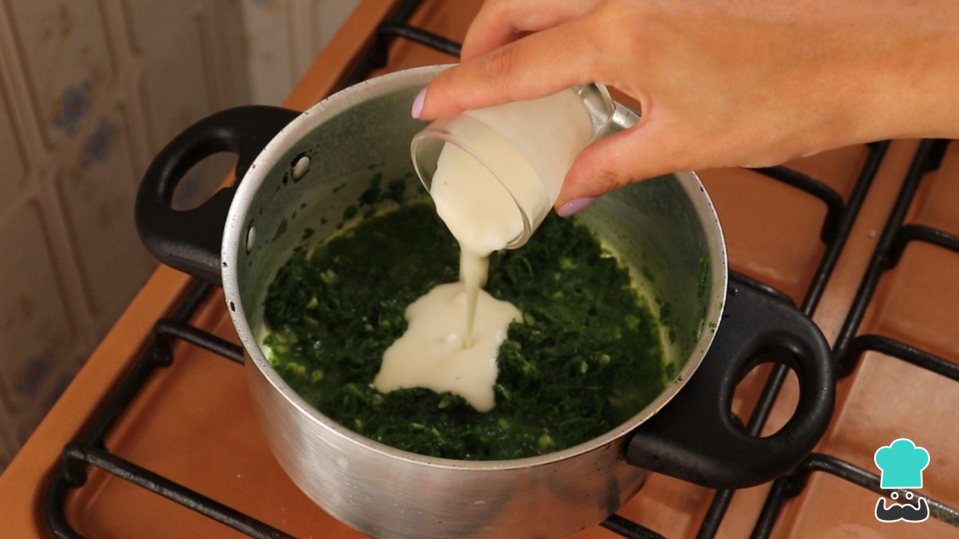 Adicione espinafre batido, misture bem e tempere com sal e pimenta a gosto.