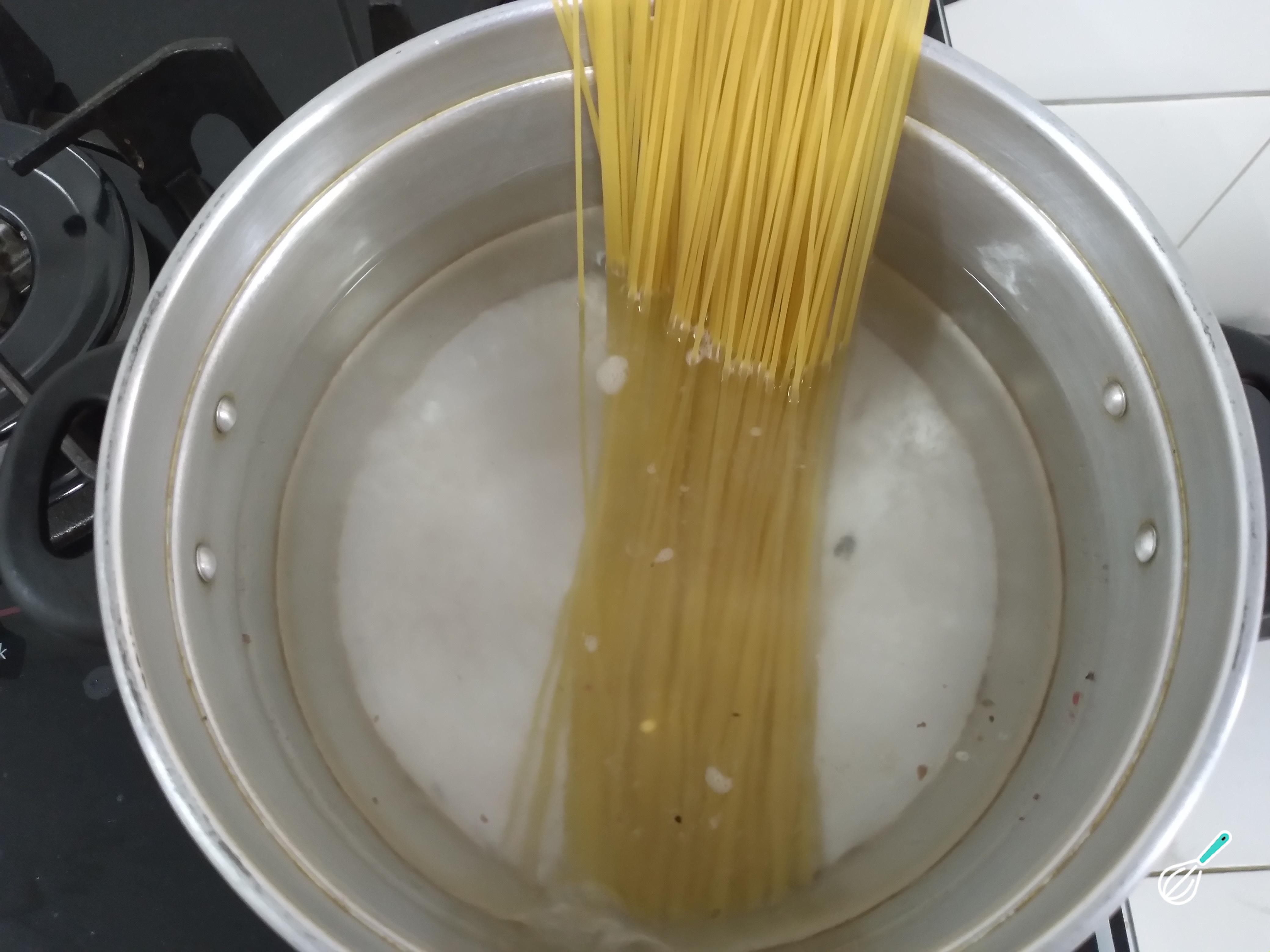 Com a água fervendo coloque o macarrão para cozinhar de acordo com as instruções de tempo da embalagem.