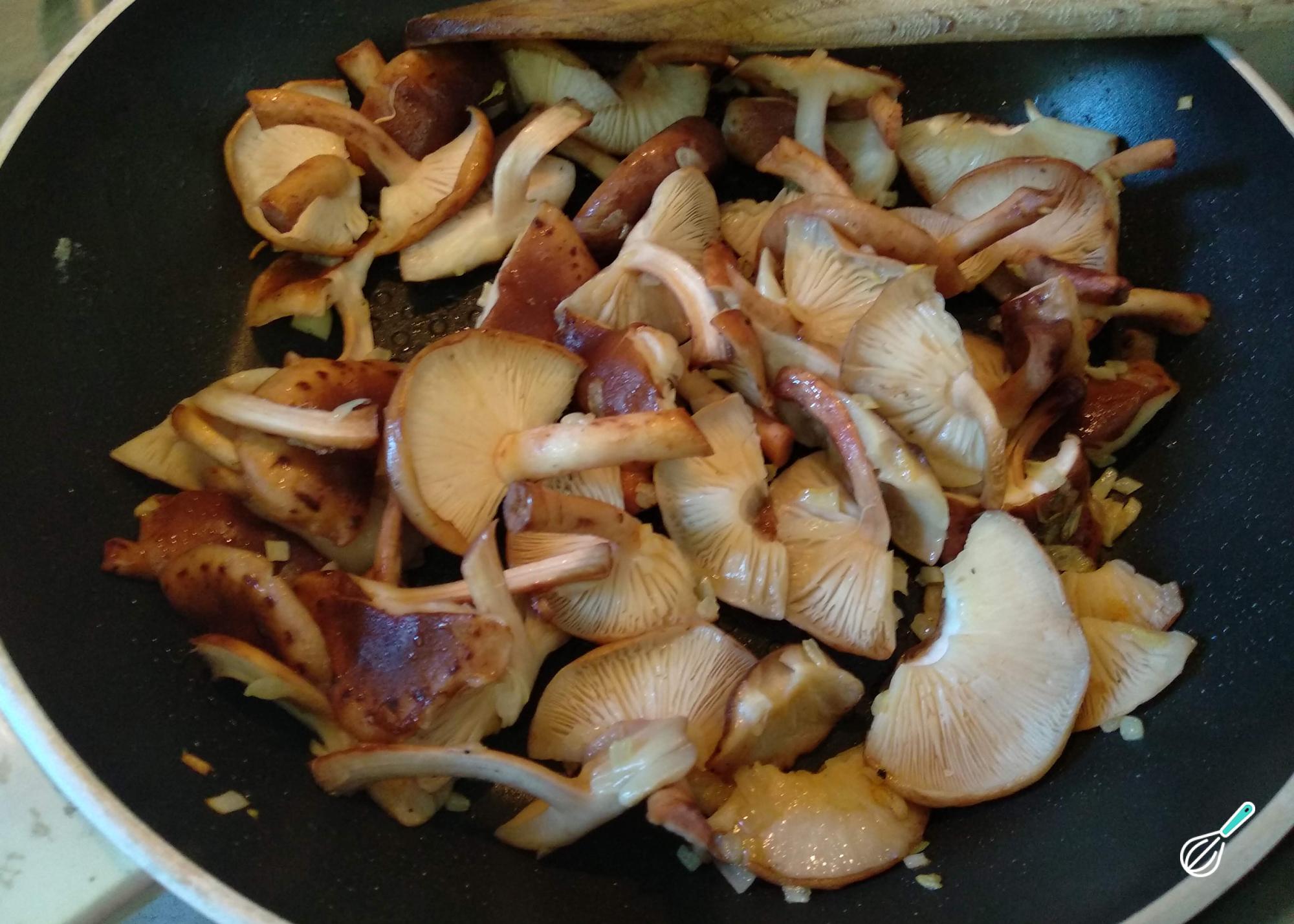 Adicione os cogumelos e deixe cozinhar por cerca de 5 minutos, ou até murcharem. Após, retire para um prato e reserve.