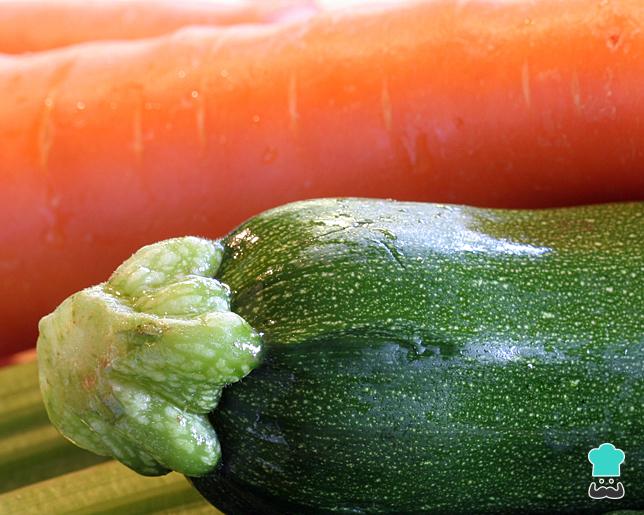 - Na panela: leve ao fogo uma panela com água e um pouco de sal e, quando ferver, adicione a cenoura. Cozinhe por 2 minutos, junte a abobrinha e cozinhe por mais 1 minuto.